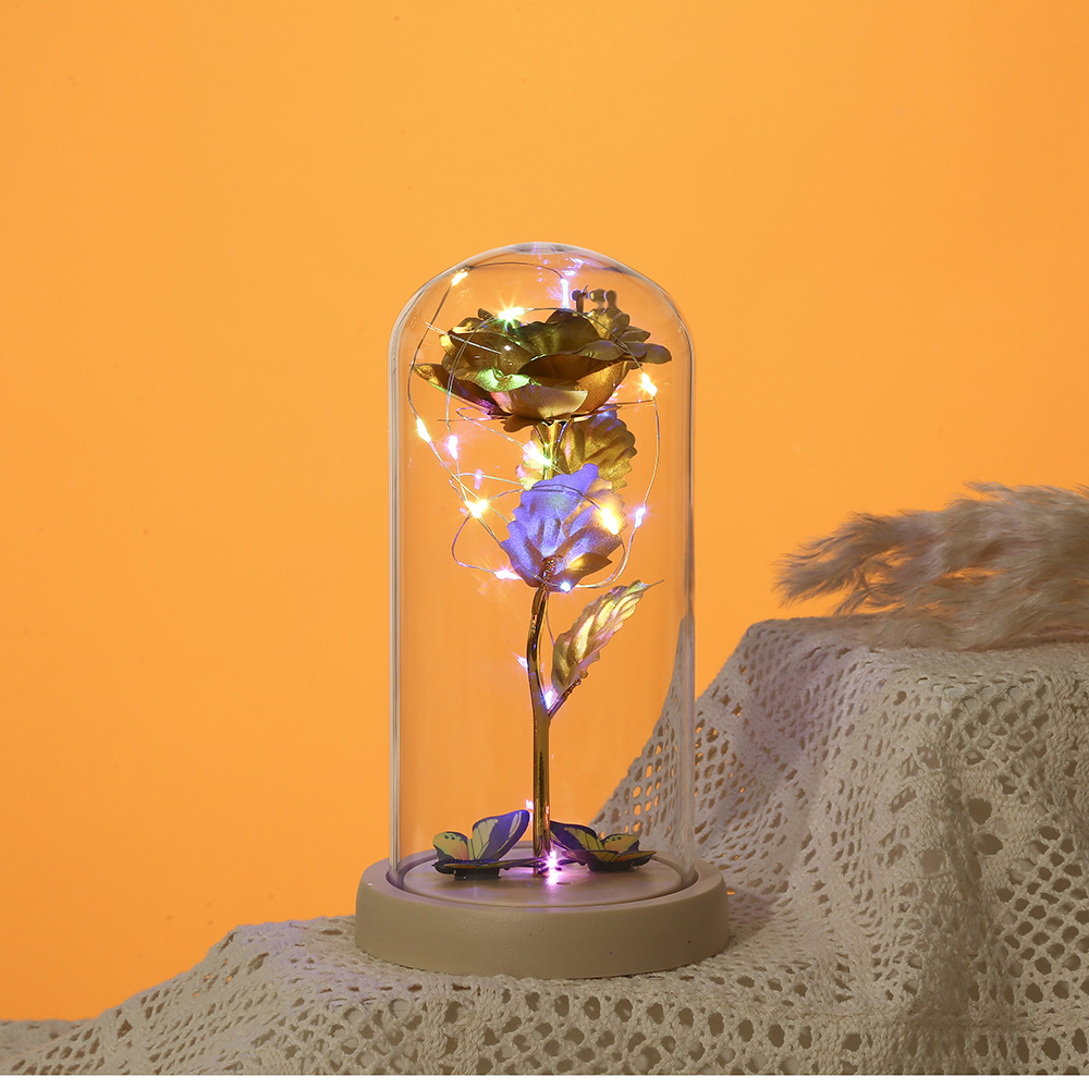 foreign trade exclusive for gold foil flower glass cover rose gift box artificial flower gift decoration gift led light