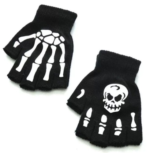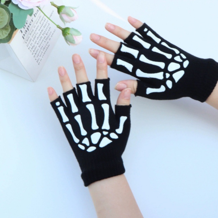 skull ghost claw acrylic luminous glow green light gloves halloween party gloves exposed five finger magical gloves