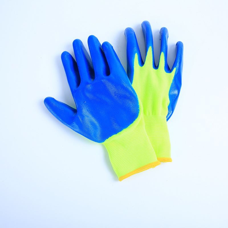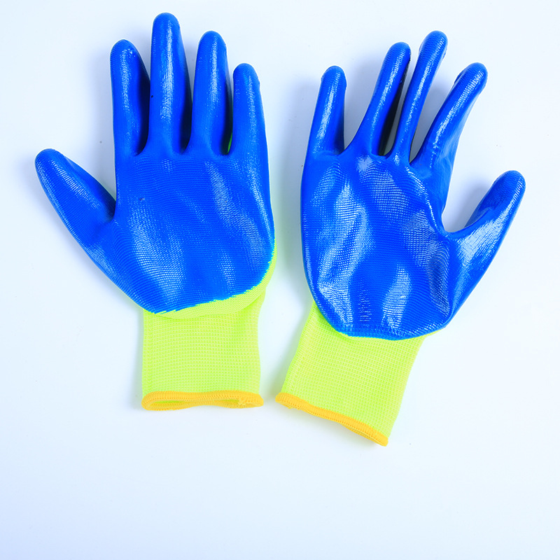 wholesale price excellent 13-pin white multi-color nitrile coated gloves thickening and wear-resistant oil-proof construction site gloves