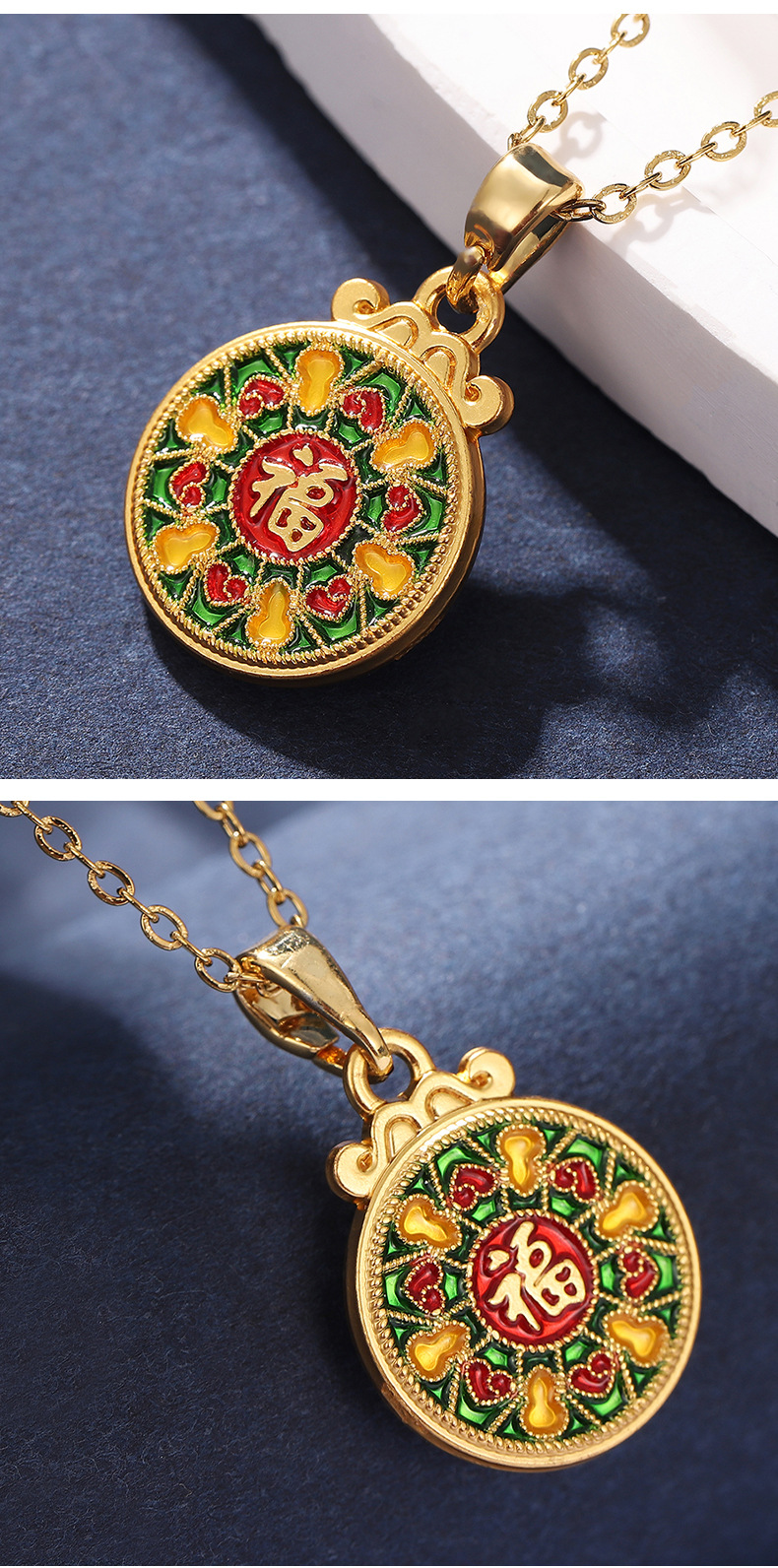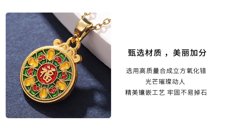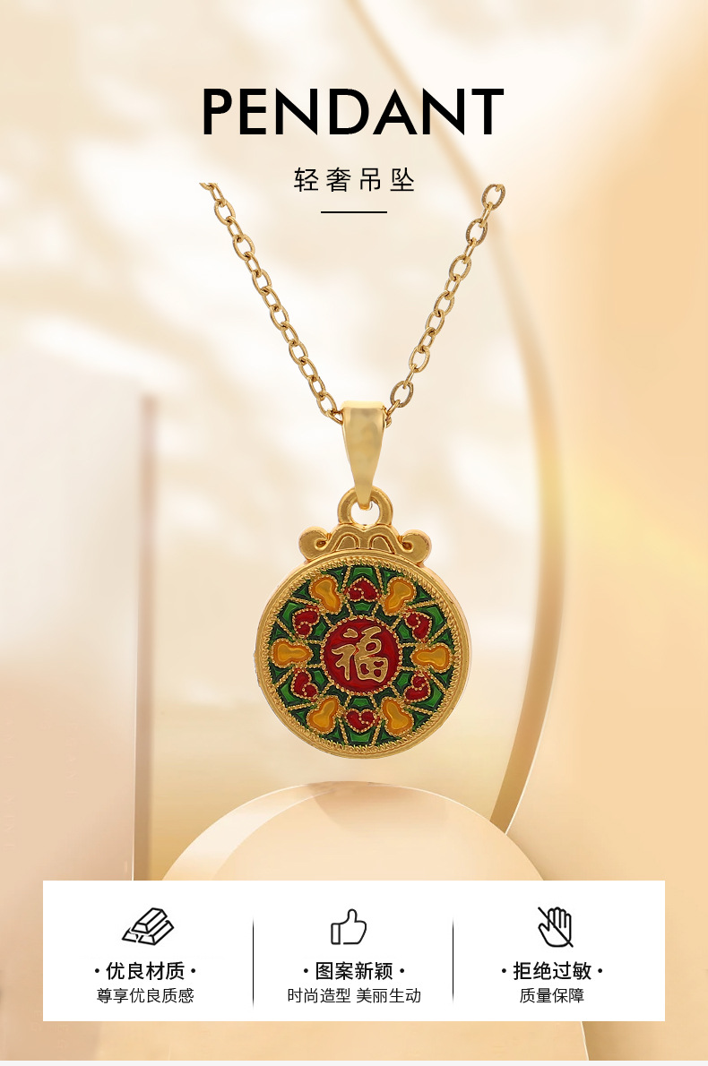 ancient style alluvial gold lotus fu necklace women's safe and healthy lucky fortune clothing accessories color retention wholesale pendant 中文版