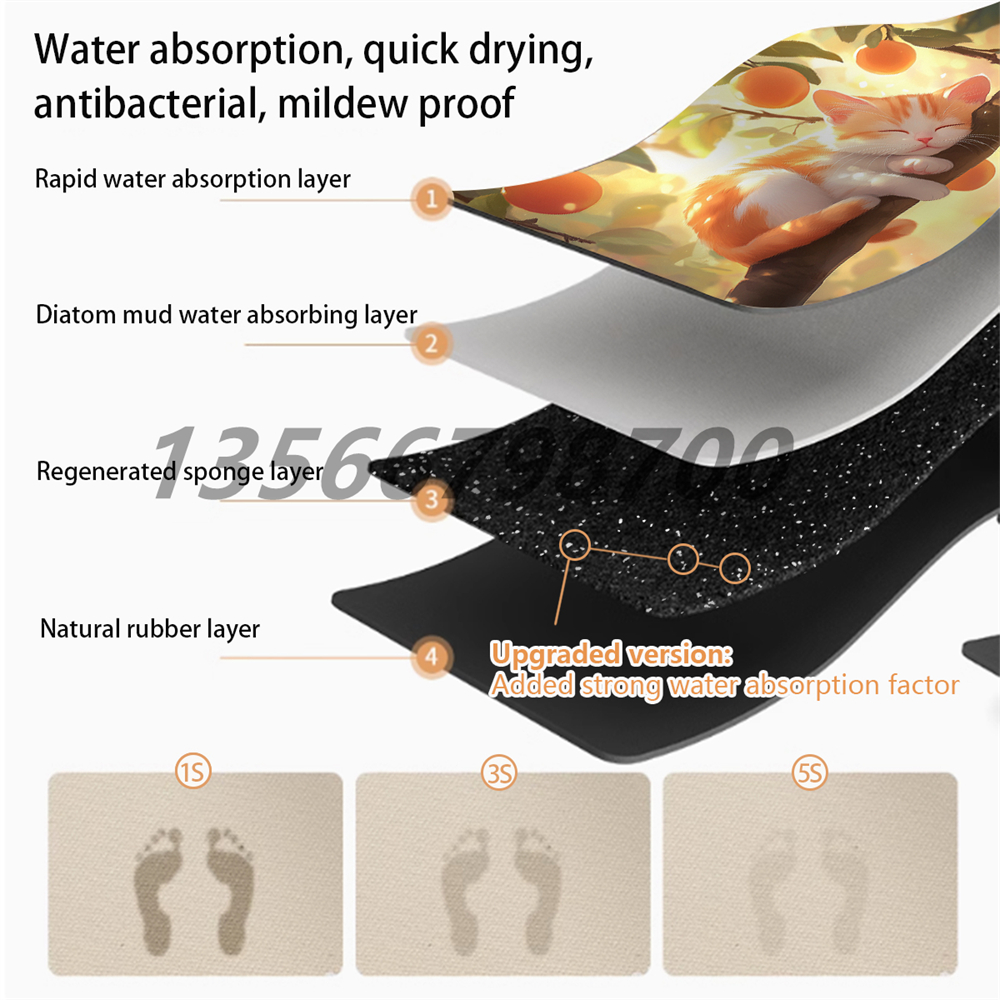[muqing] diatom ooze floor mat bathroom absorbent non-slip floor mat household kitchen bathroom non-slip floor mat 中文版