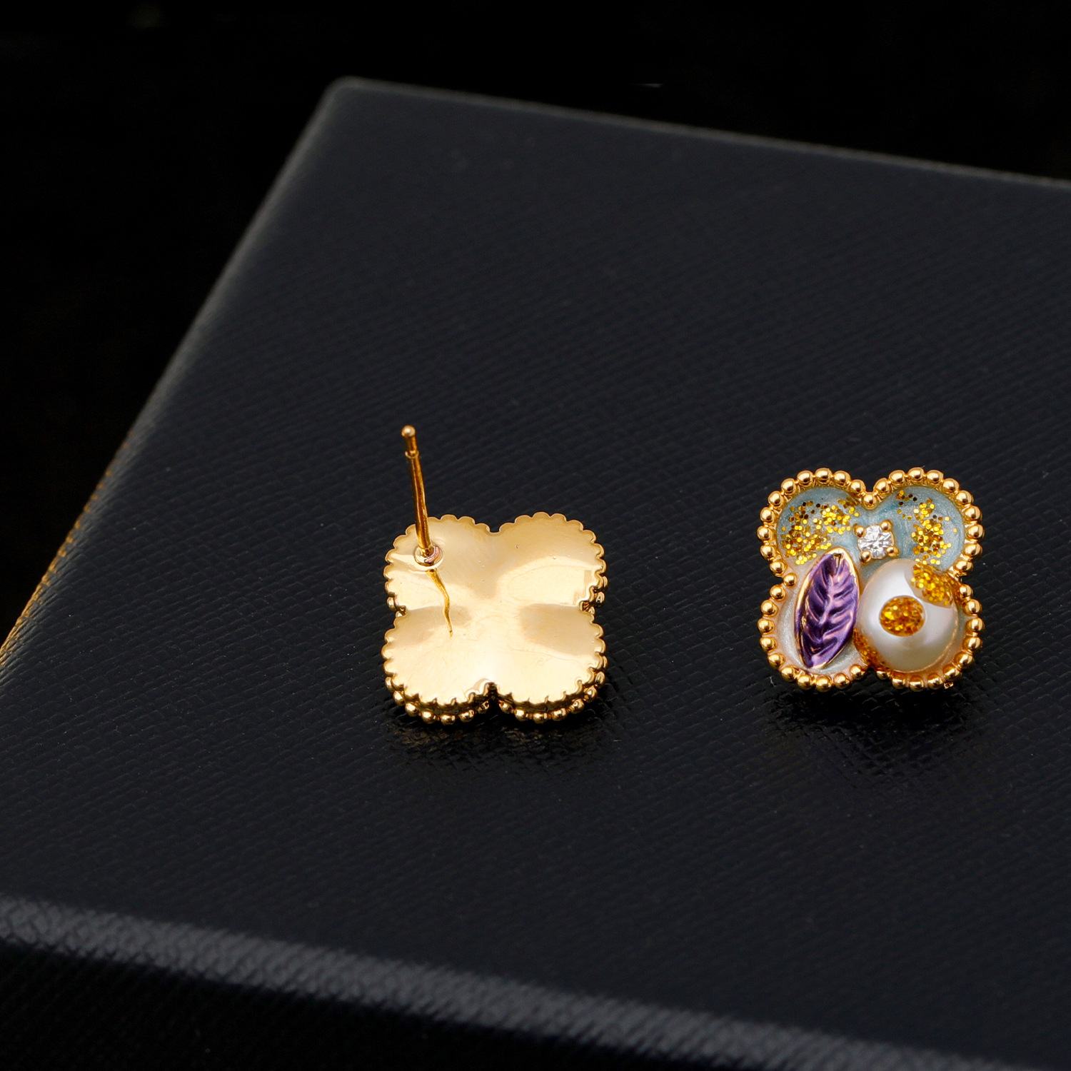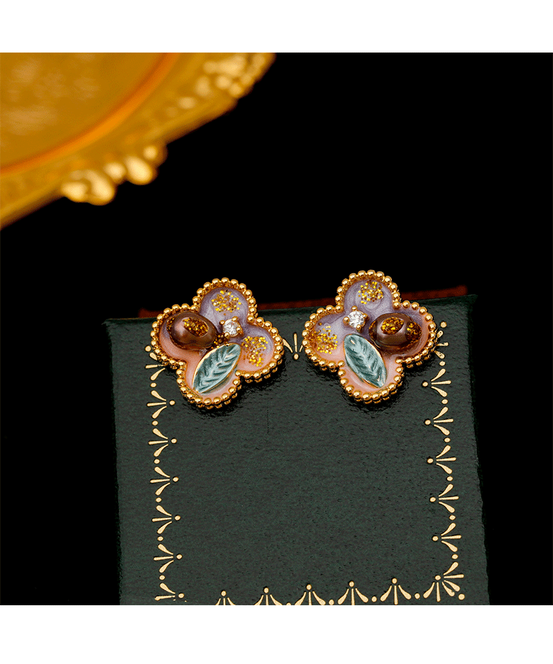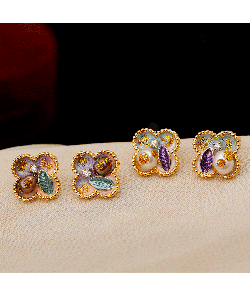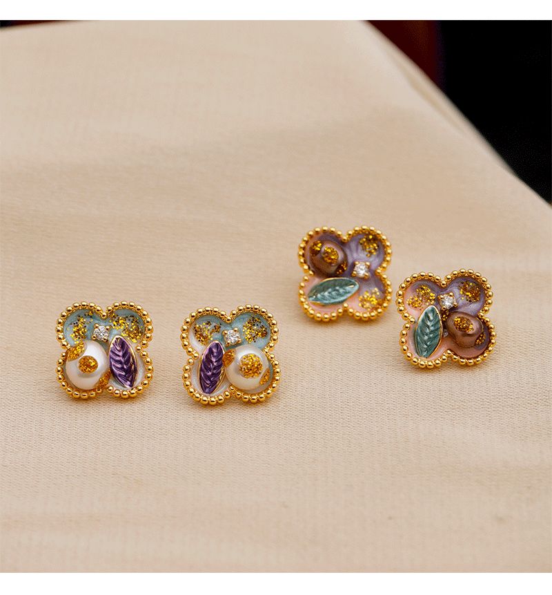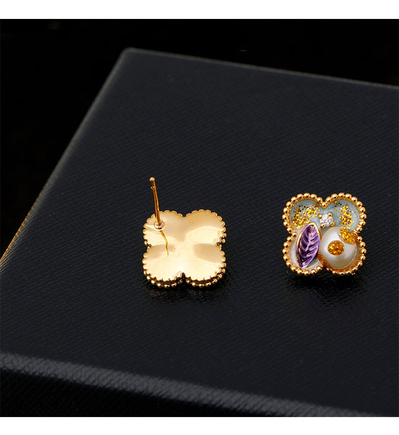 18k golden balls light purple pink [925 silver needle plated needle]]