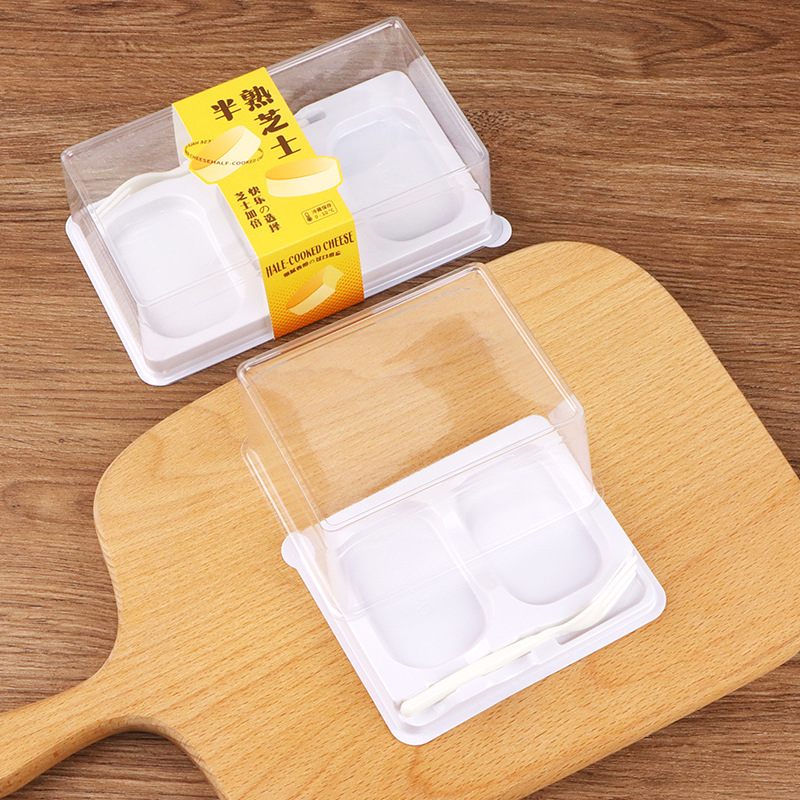 baking packaging half cooked cheese boxes transparent anti-fog 2 tablets 3 tablets with fork light fromage cake high-grade pet to-go box 中文版