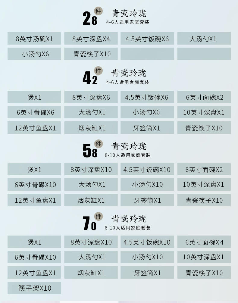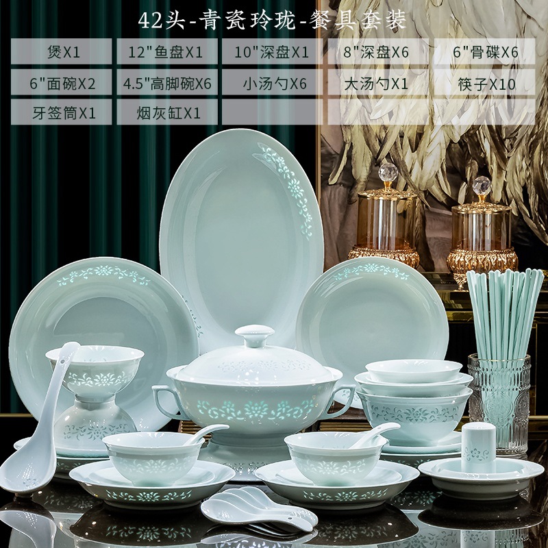 celadon glaze linglong 42 heads (gift box)