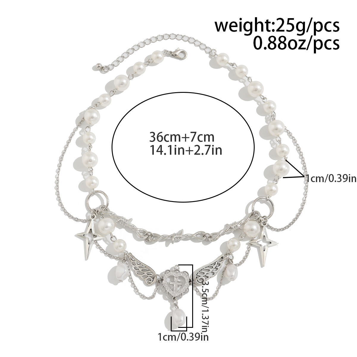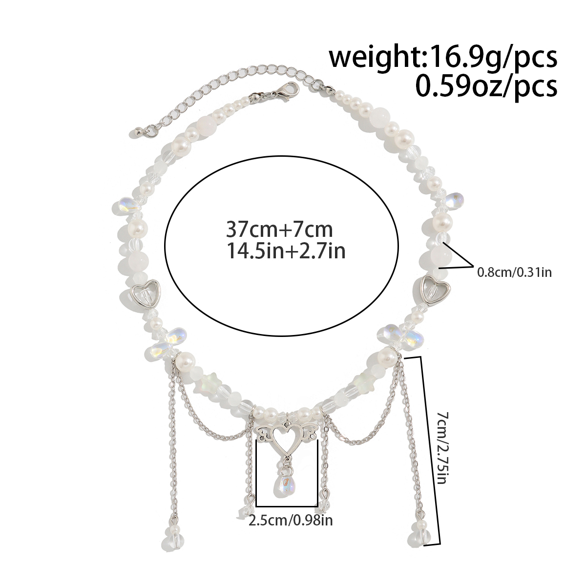 Product Material: Imitation Pearl + Copper clad iron chain + Alloy
