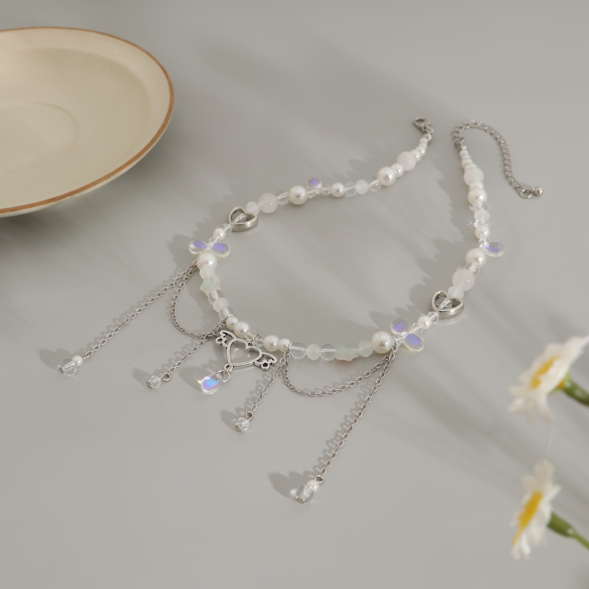 Product Material: Imitation Pearl + Acrylic + Alloy + Copper clad iron chain + Imitation crystal + Glass beads