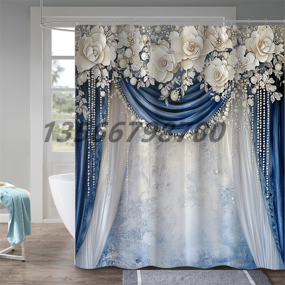 [muqing] shower curtain punch-free printing shower curtain supply polyester shower curtain waterproof bathroom shower curtain cloth bathroom curtain 中文版