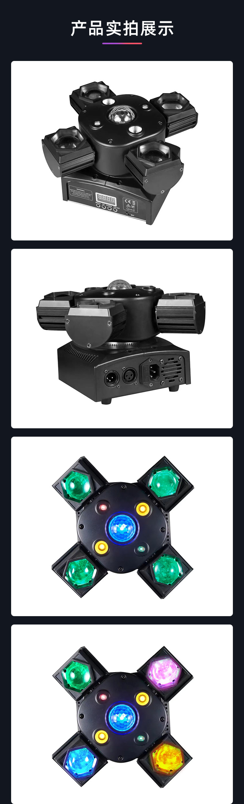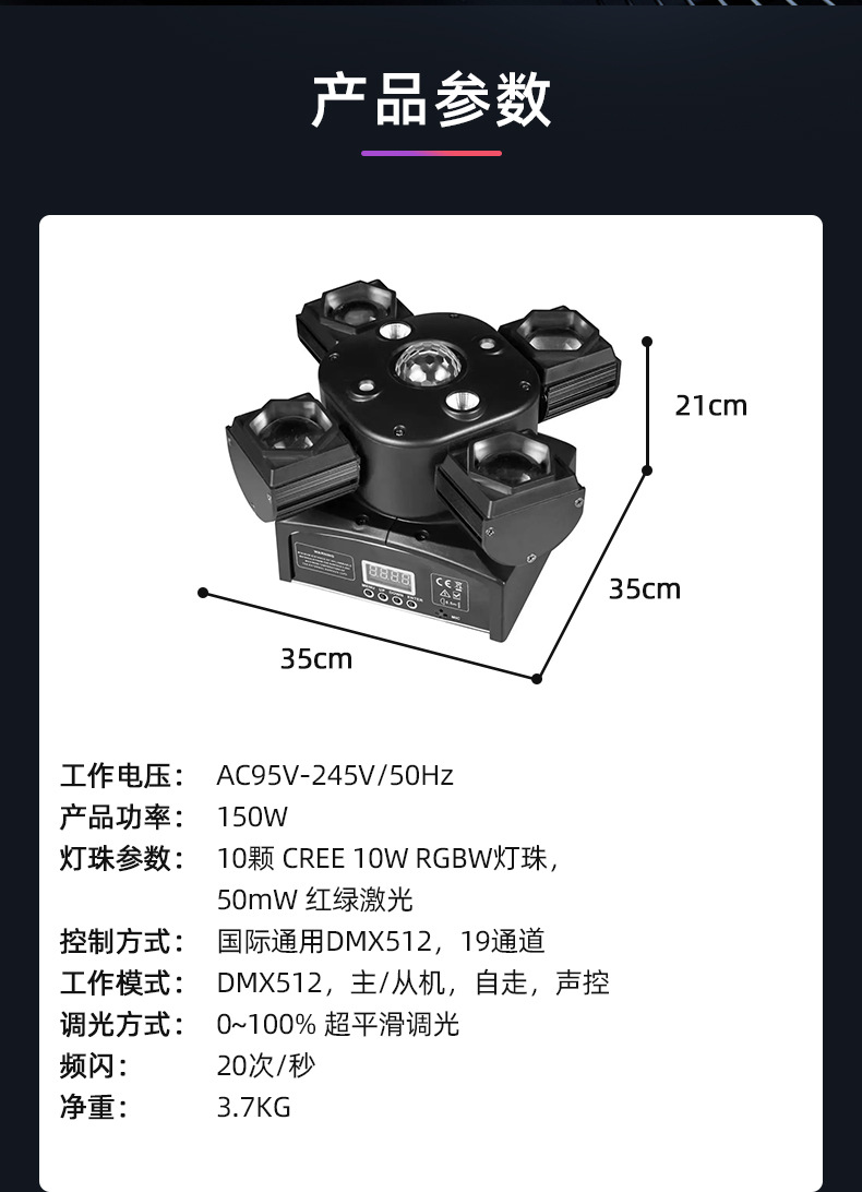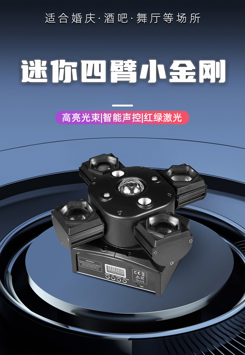 Four-armed small gold steel shaking beam laser light, just the polar fox bee eye LED strobe, KTV, bar, disco stage lighting