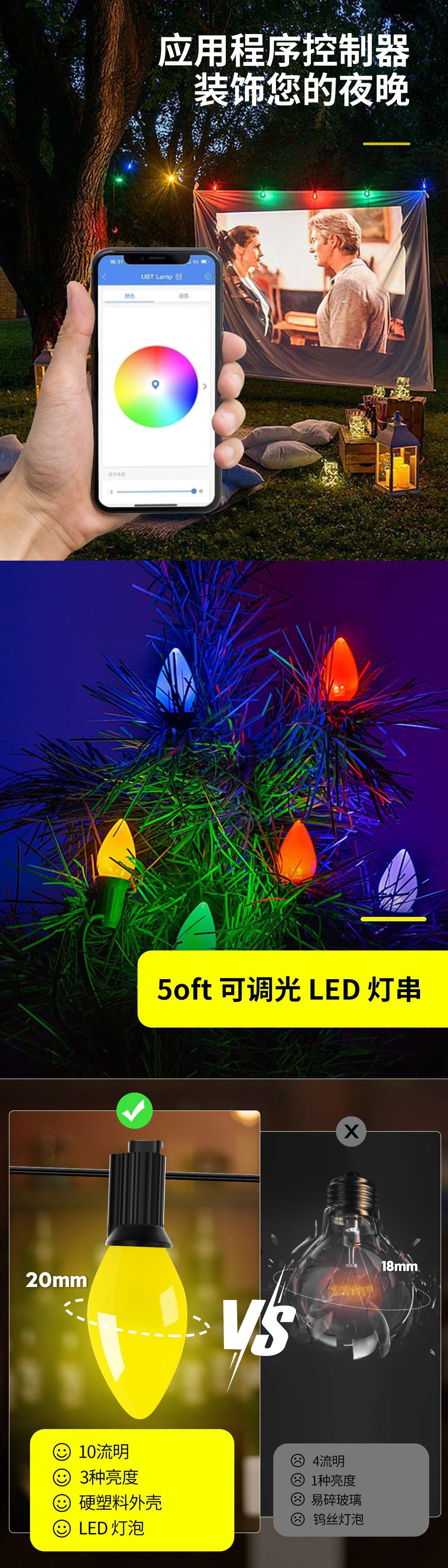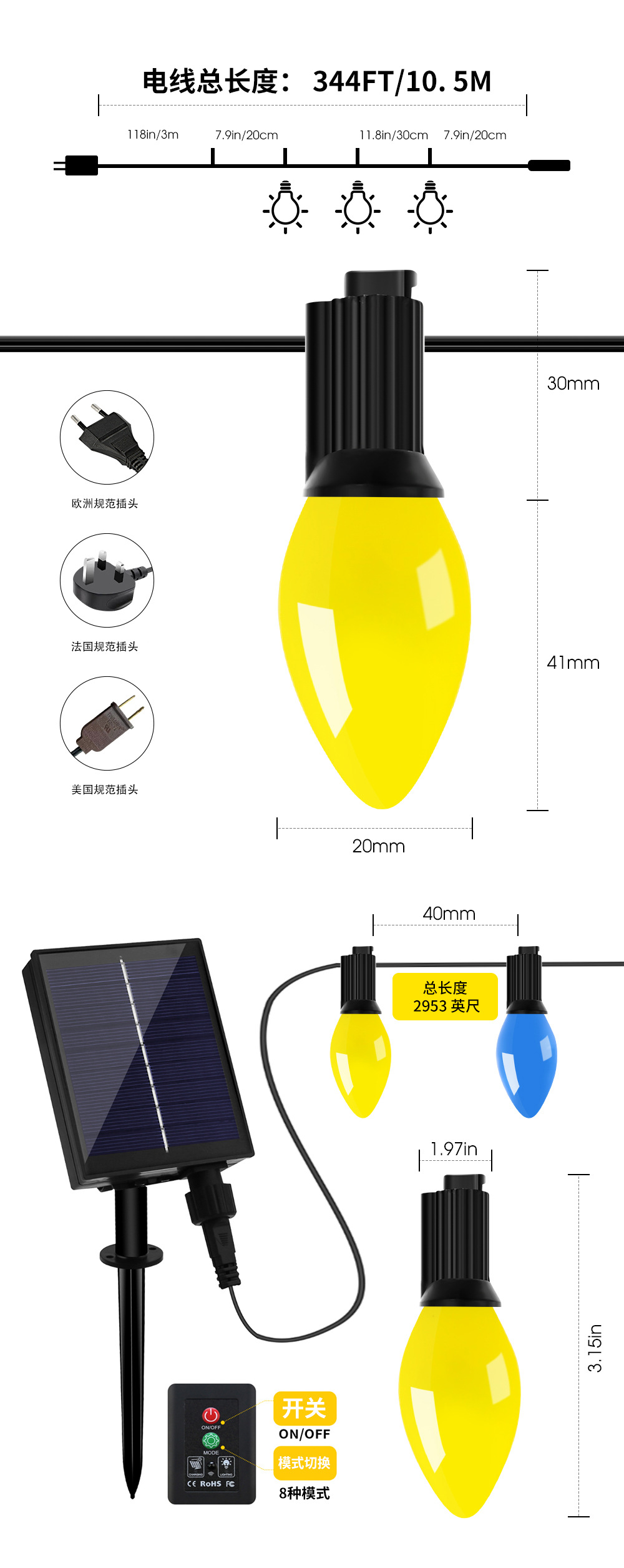 foreign trade exclusive for christmas multi-sided smd strawberry bulb rgb lighting chain ip65 outdoor waterproof garden decoration festival 中文版