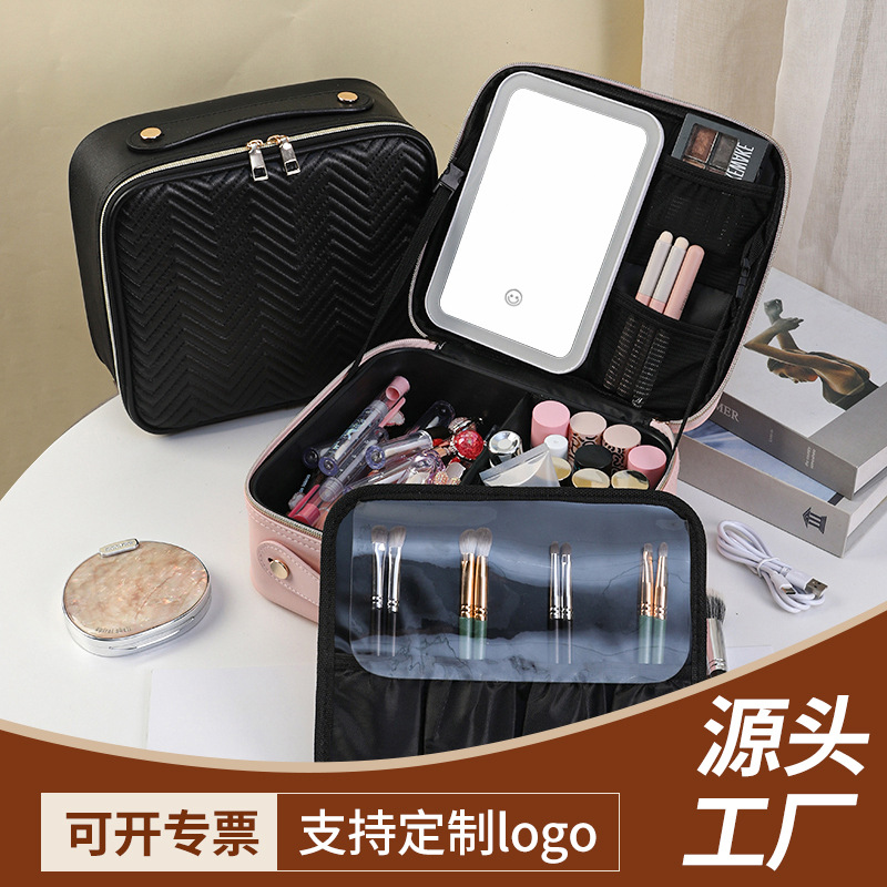 pu leather black [rechargeable led lamp full mirror]]