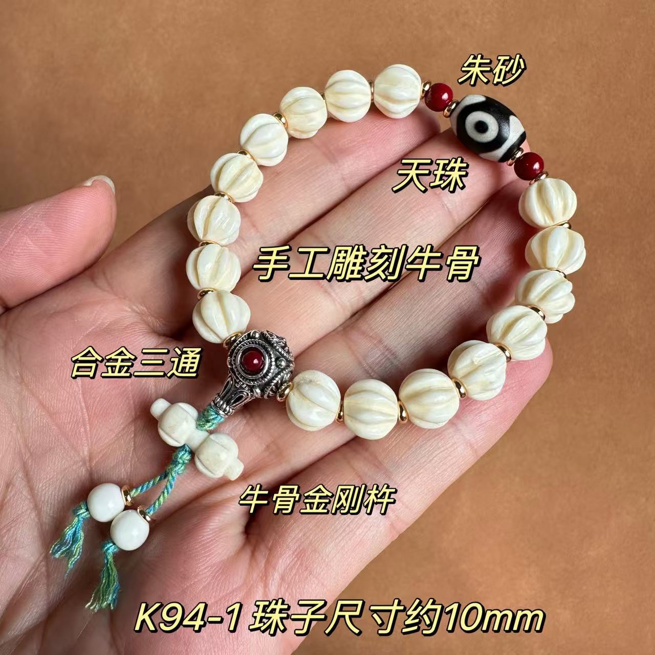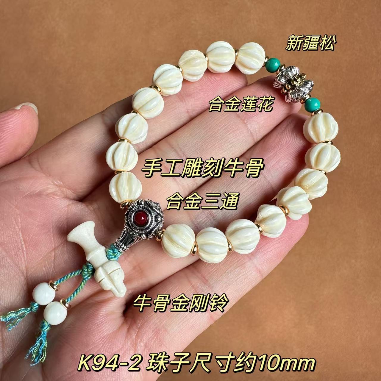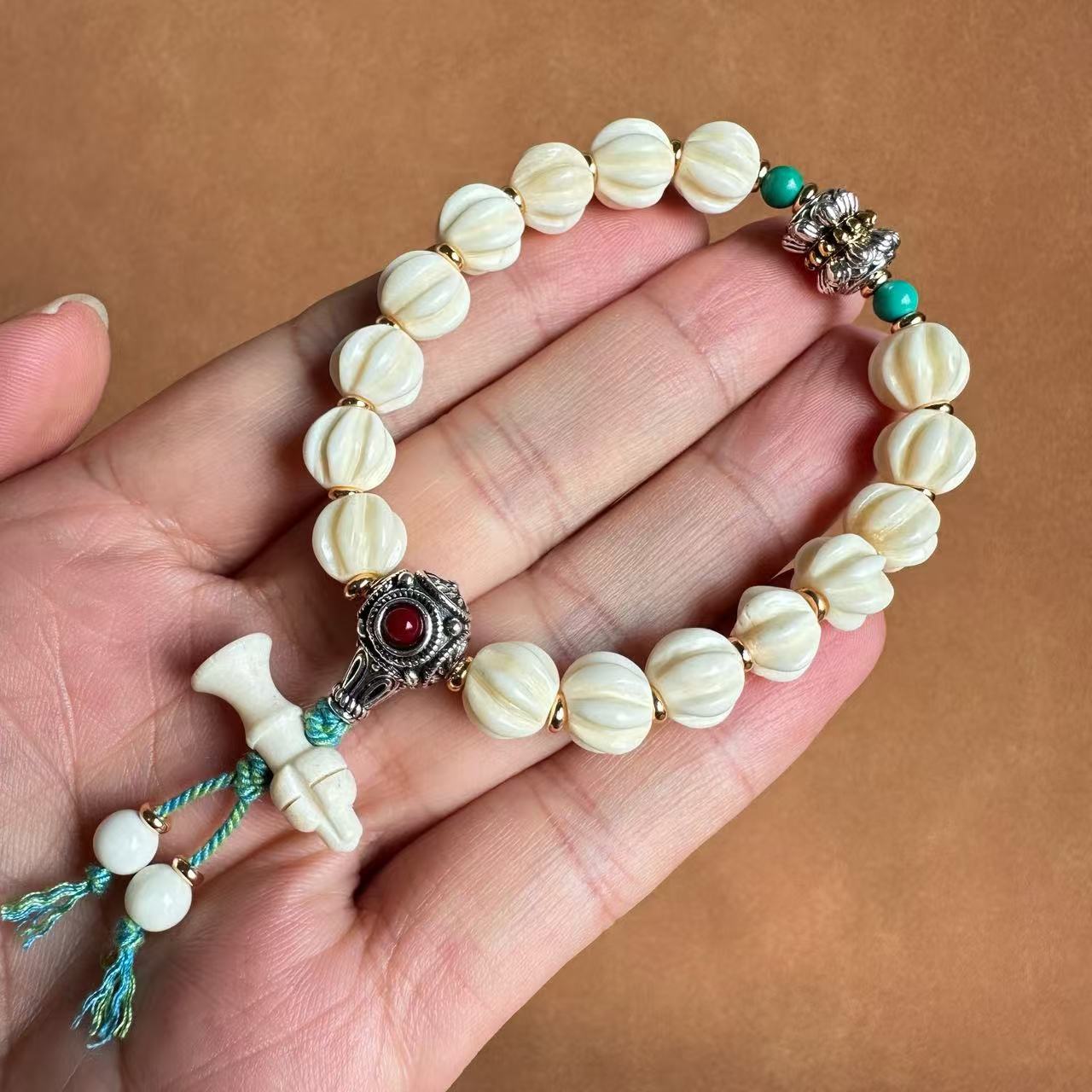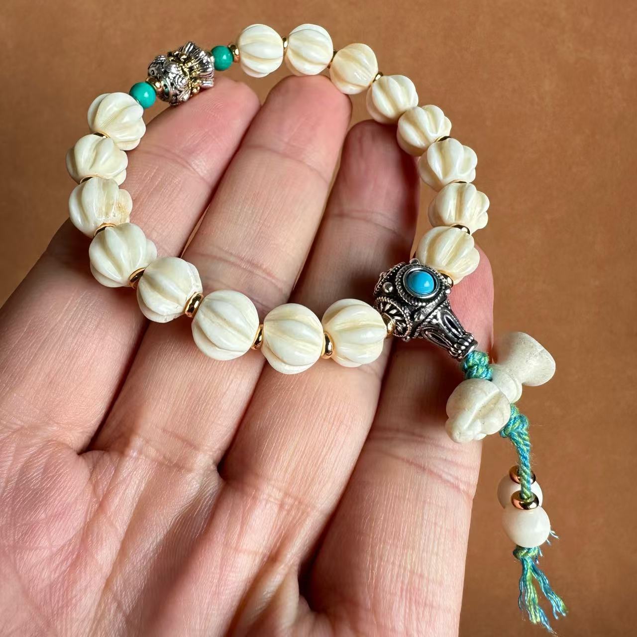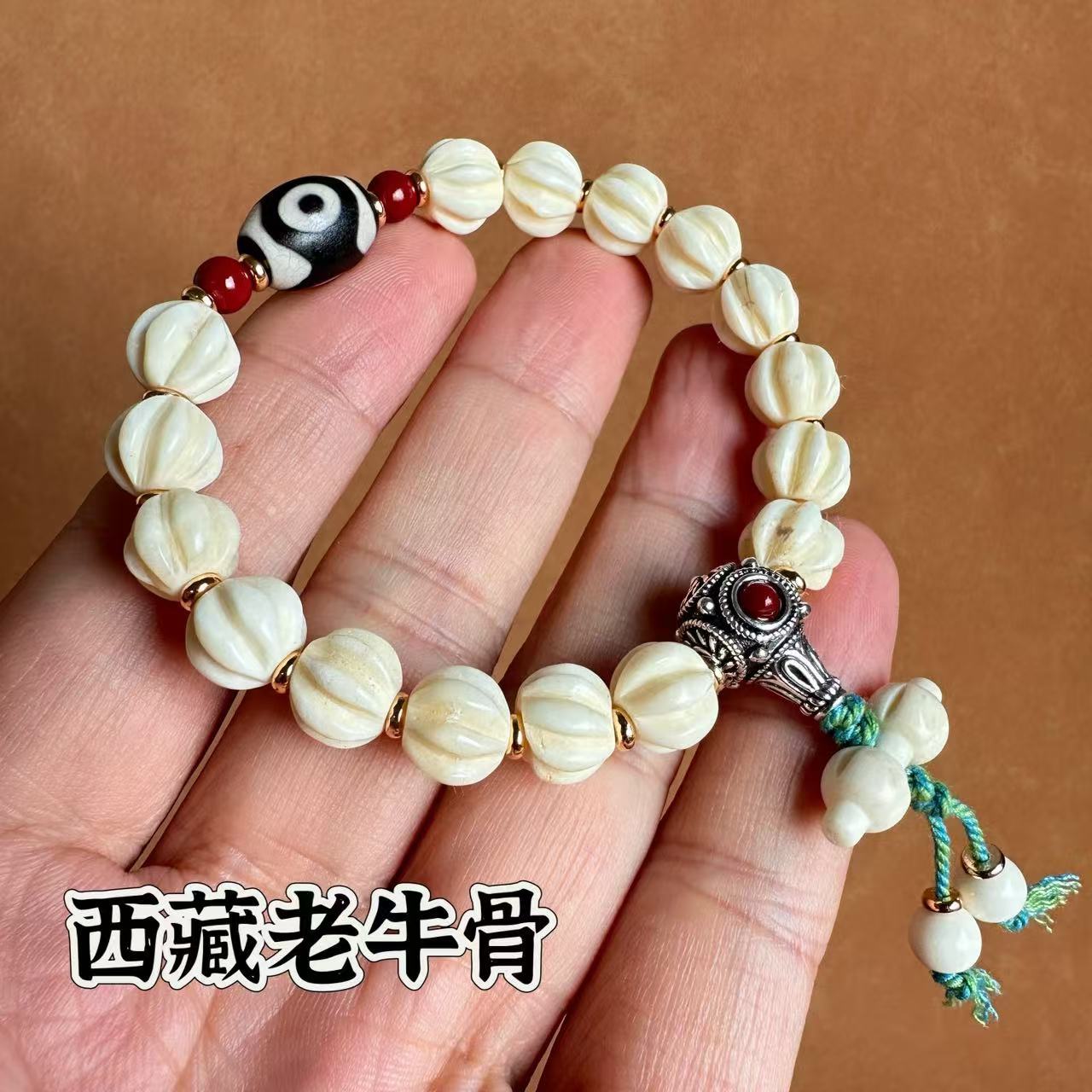 10mm tibet old ox bone bracelet [hand carved twisted bead diamond bell style]]