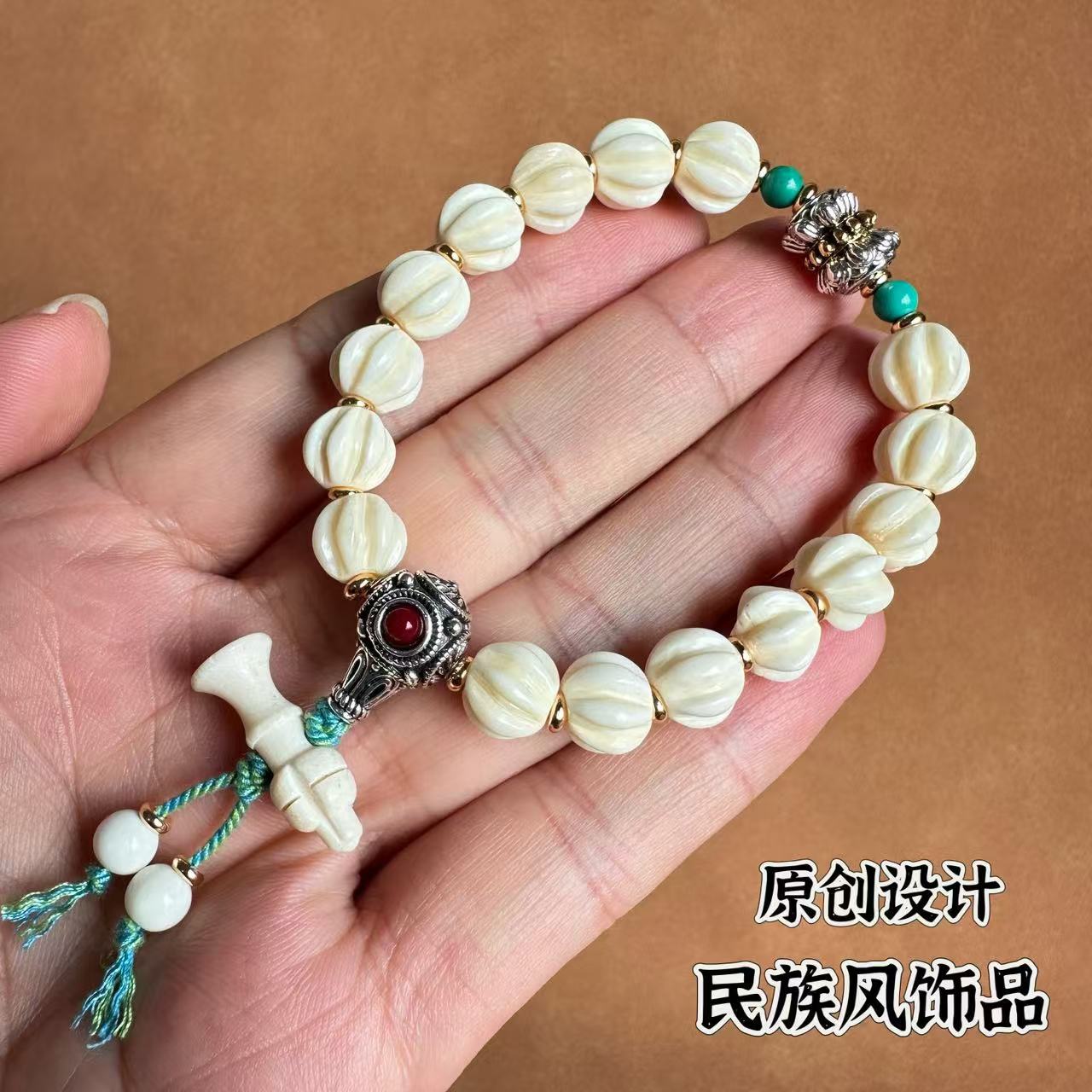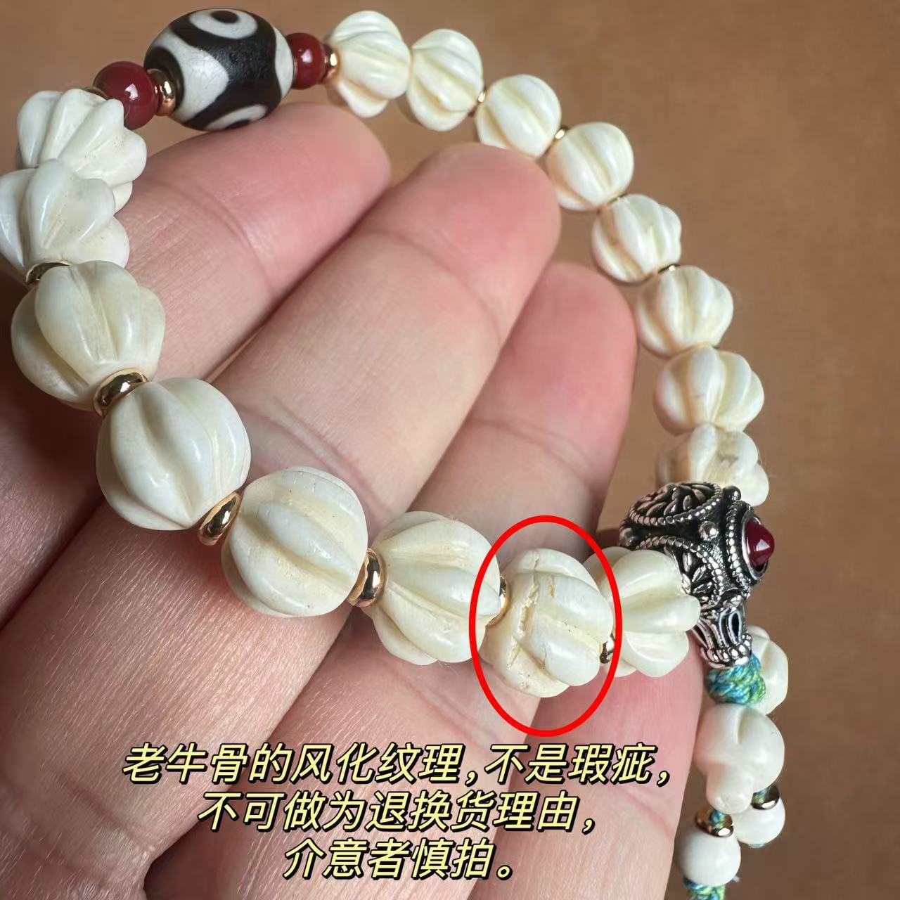 8*10 ox bone bracelet [peacock tibet beads]]