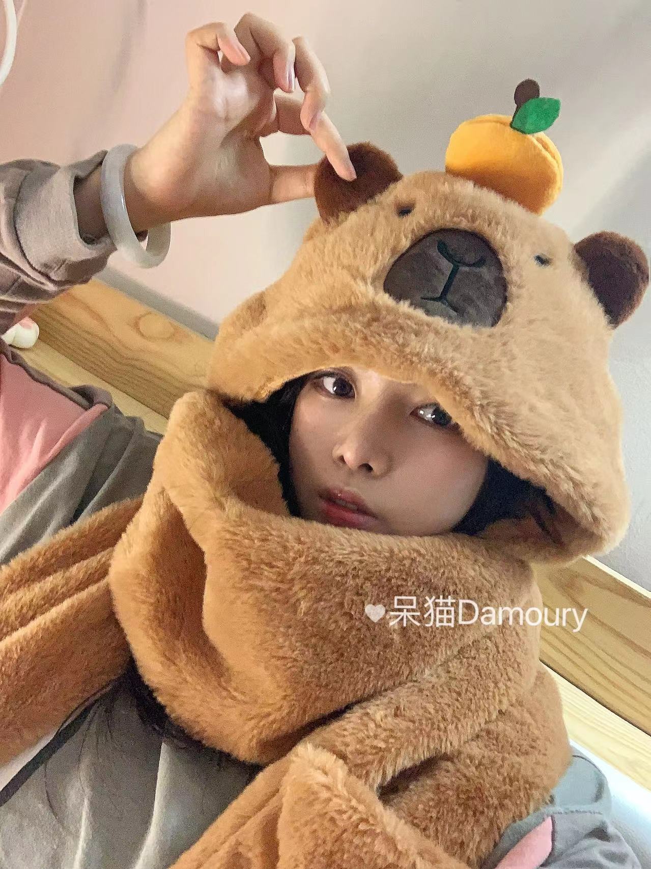 [orange style] gloves, scarf, hooded