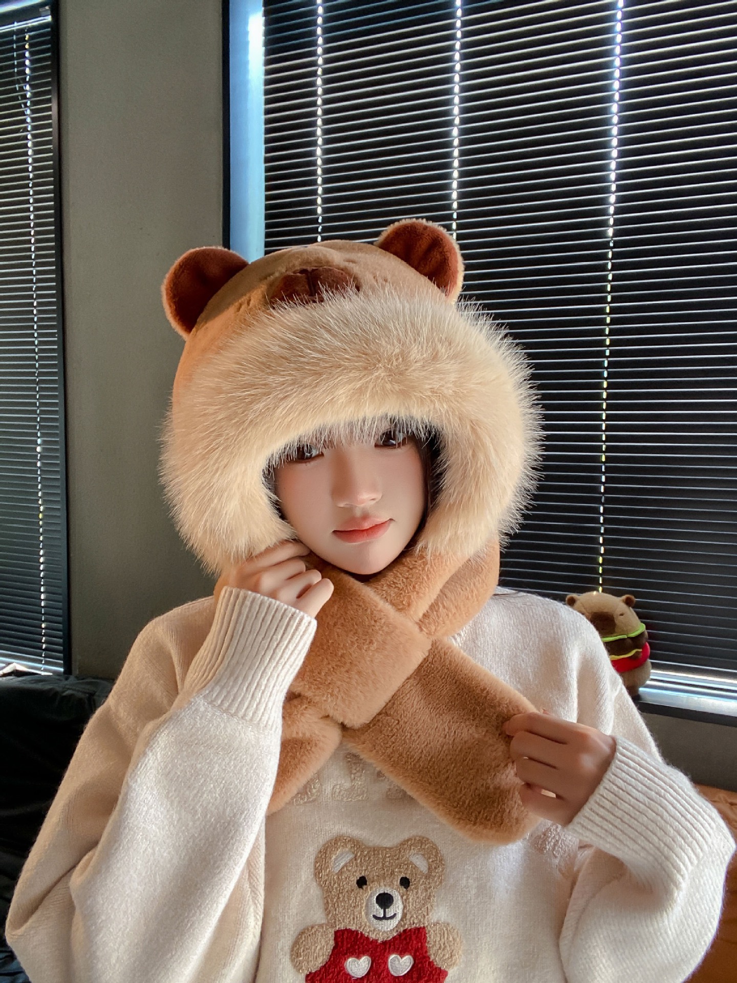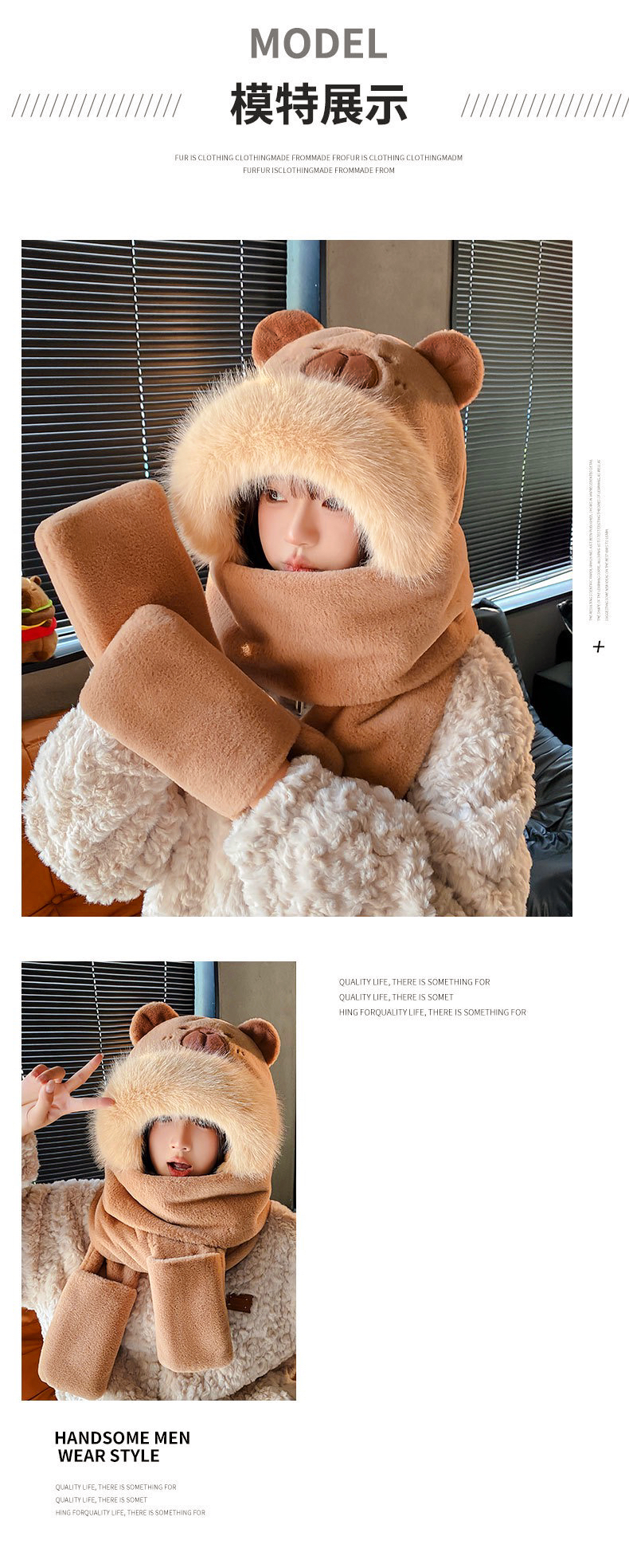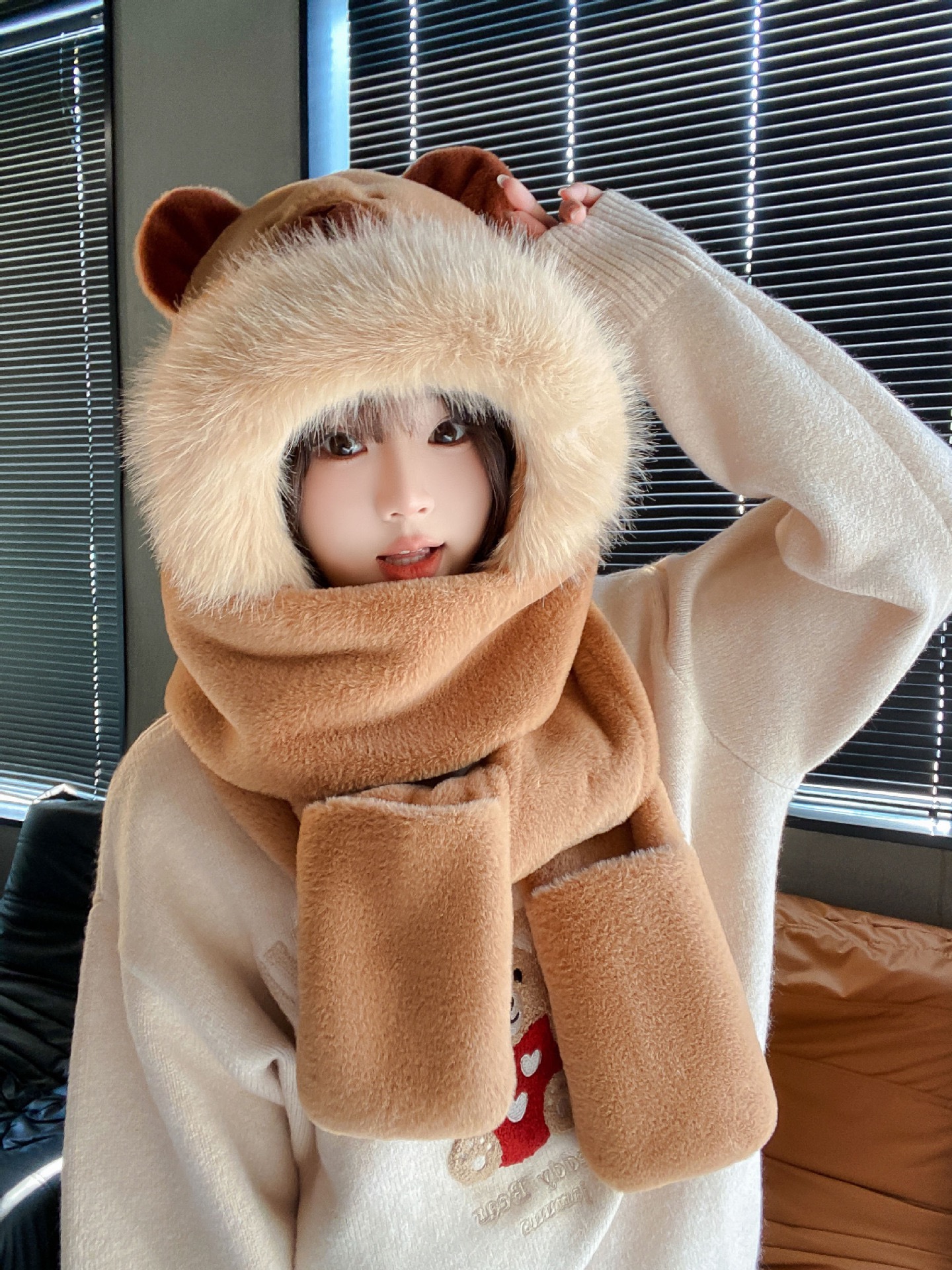 [terry style] gloves, scarf, hooded