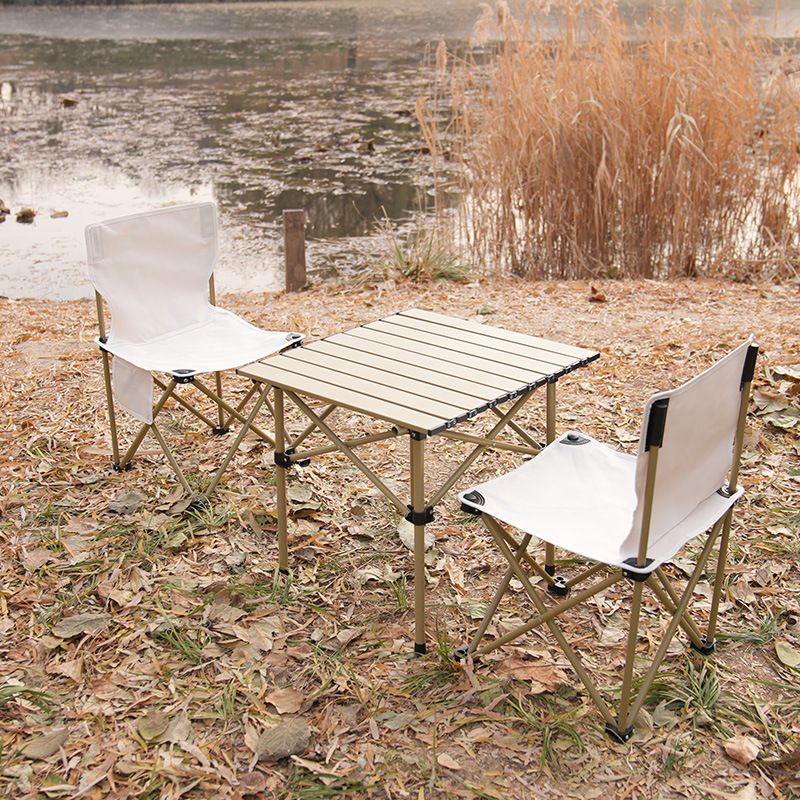 three-piece set (quicksand gold eight-immortal table +2 large folding chair)