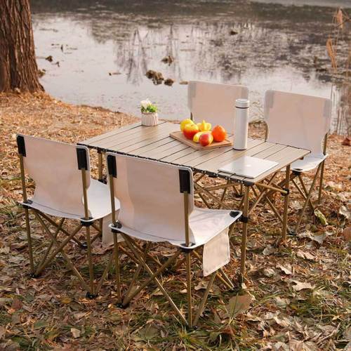 five-piece set (quicksand gold small square table +4 large folding chair)