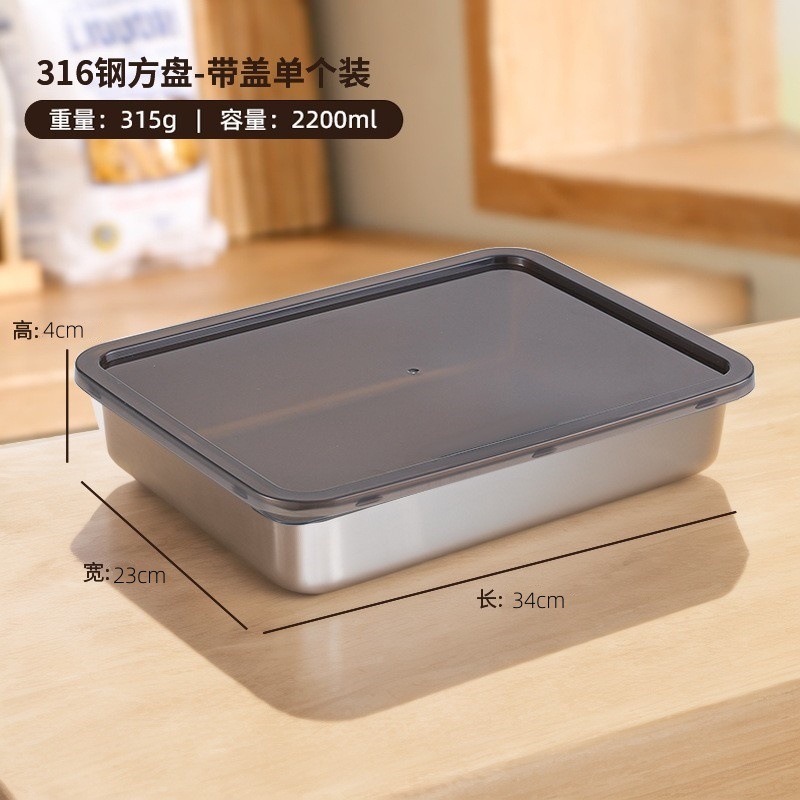 [316 steel] fresh-keeping square plate-no cover (1 pack)