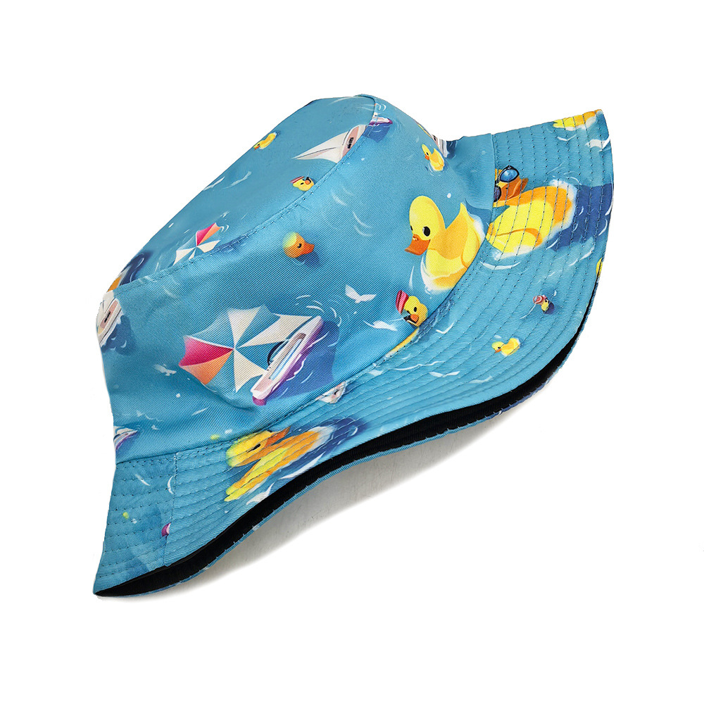 new small yellow duck bucket hat women's cartoon printed double-sided wear bucket hat outdoor student couple sun protection sun hat
