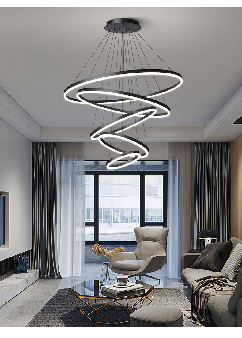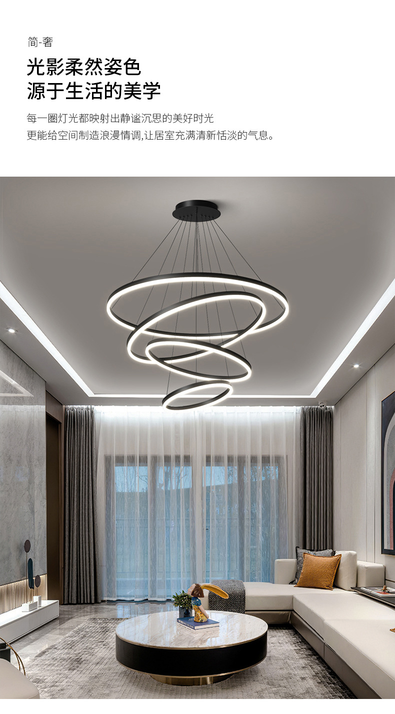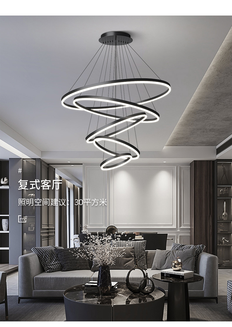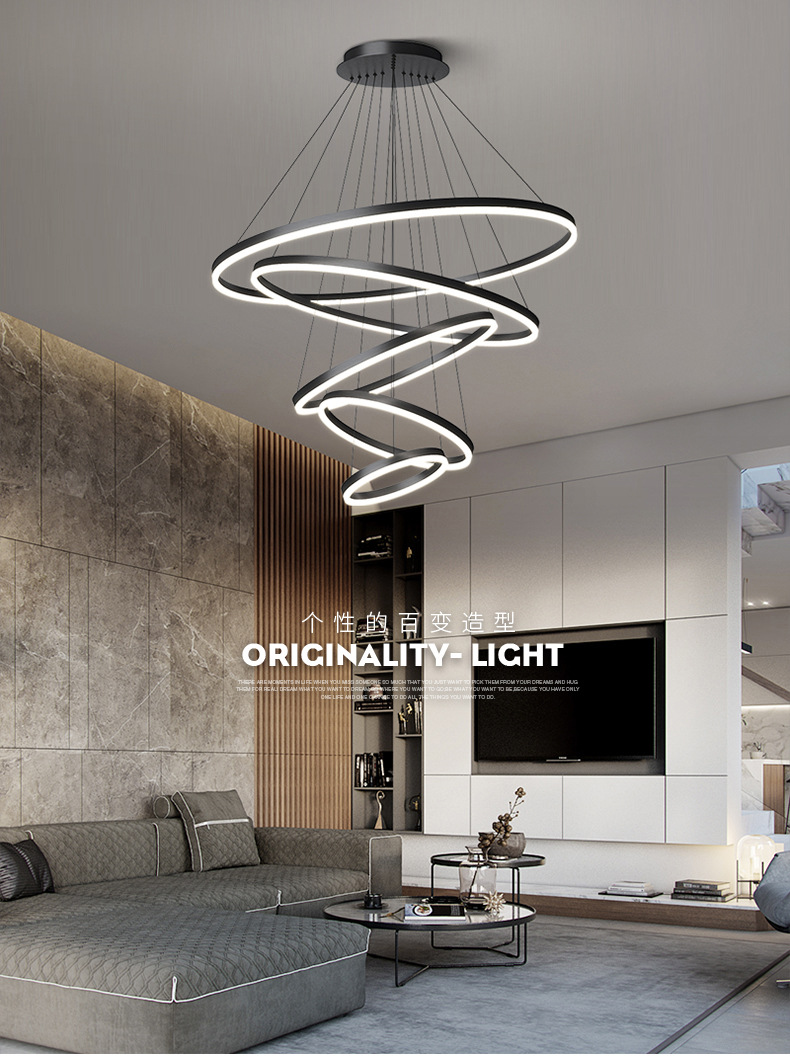 dining-room lamp modern minimalist art creative nordic duplex building villa hall ring circle living room dining room chandelier 中文版