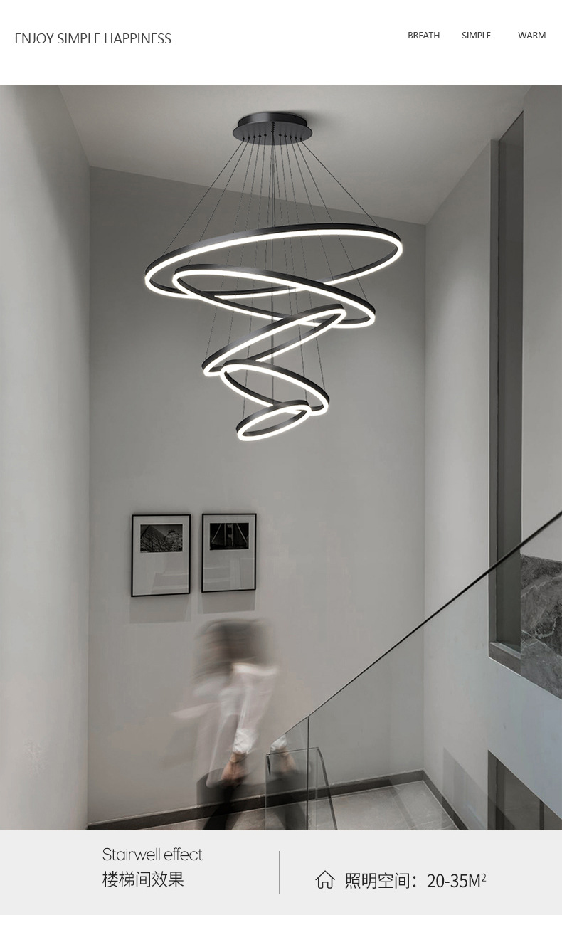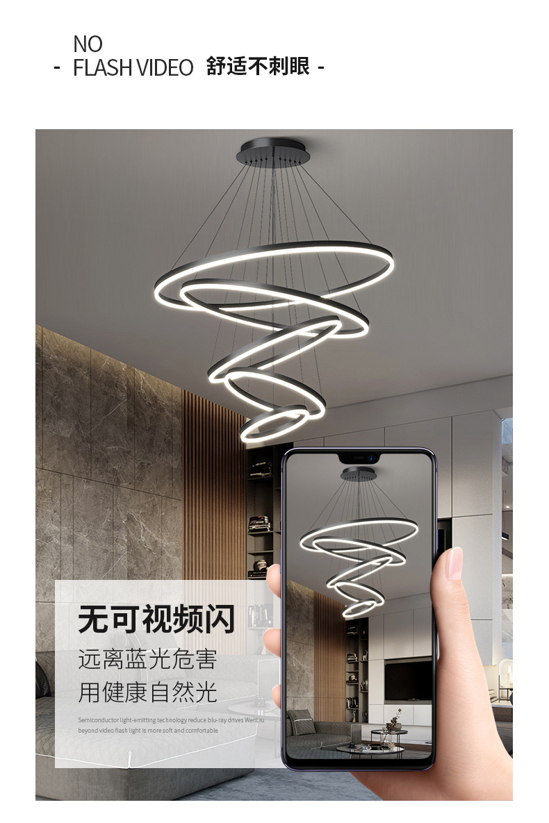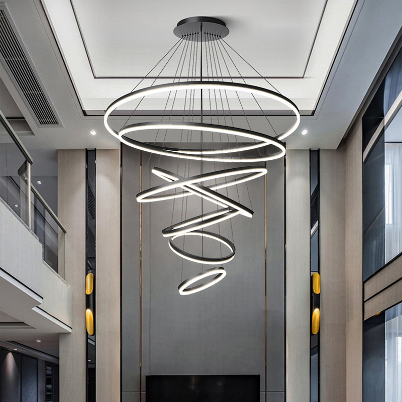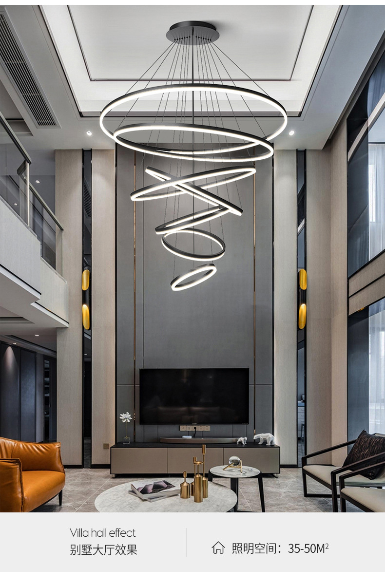 dining-room lamp modern minimalist art creative nordic duplex building villa hall ring circle living room dining room chandelier 中文版