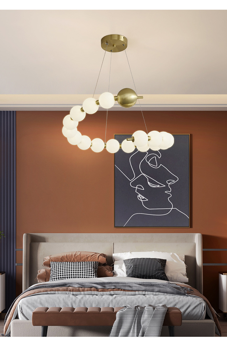 french entry lux cream style pearl necklace ring living room bedroom dining room magical bean personality chandelier 中文版