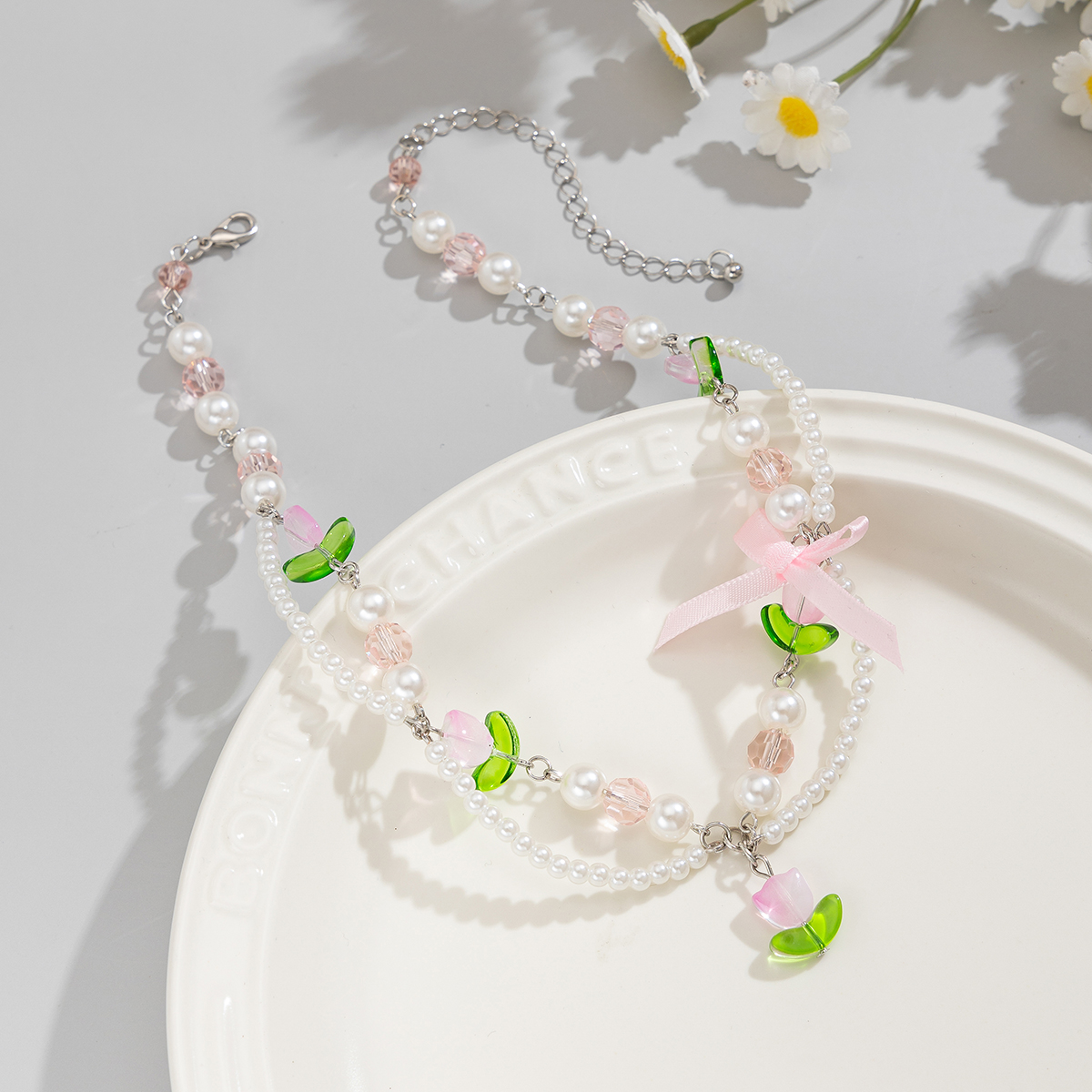 Product material: acrylic + imitation pearl + webbing + imitation crystal
