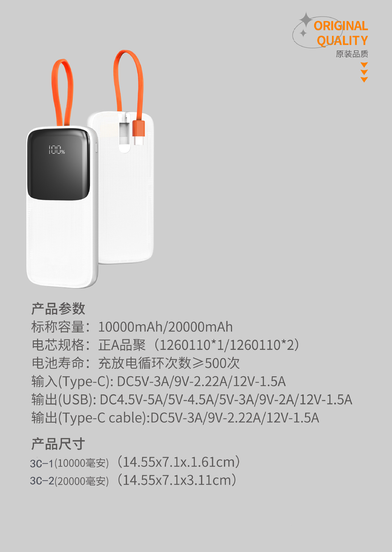 | Ivory White [National 3C Certification] | Imported battery cells ★★ 20,000mAh | 14.40 | 7.10 | 3.11 | 317.966 | 300 |