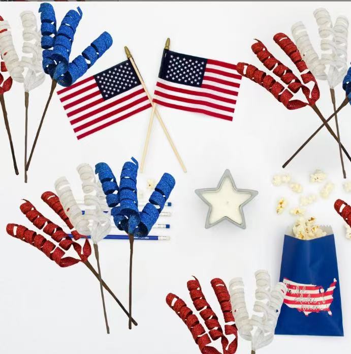 cross-border us independence day glitter powder spiral twig cutting christmas twig cutting us national day decorations 中文版