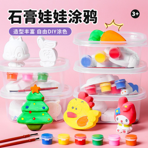 [transparent boxed] 2 plaster (random pattern) +3 color paint +1 brush +1 drawing