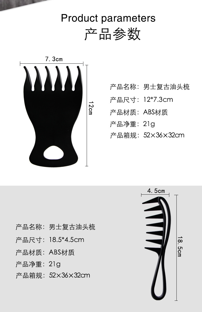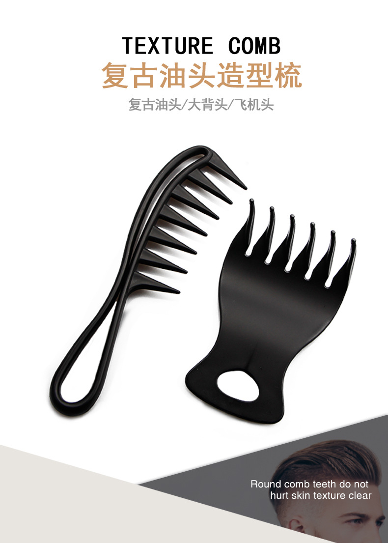 cross-border foreign trade black wide tooth suit comb for greasy hair texture comb large slicked back hairstyle comb hairdressing comb hair tools 中文版