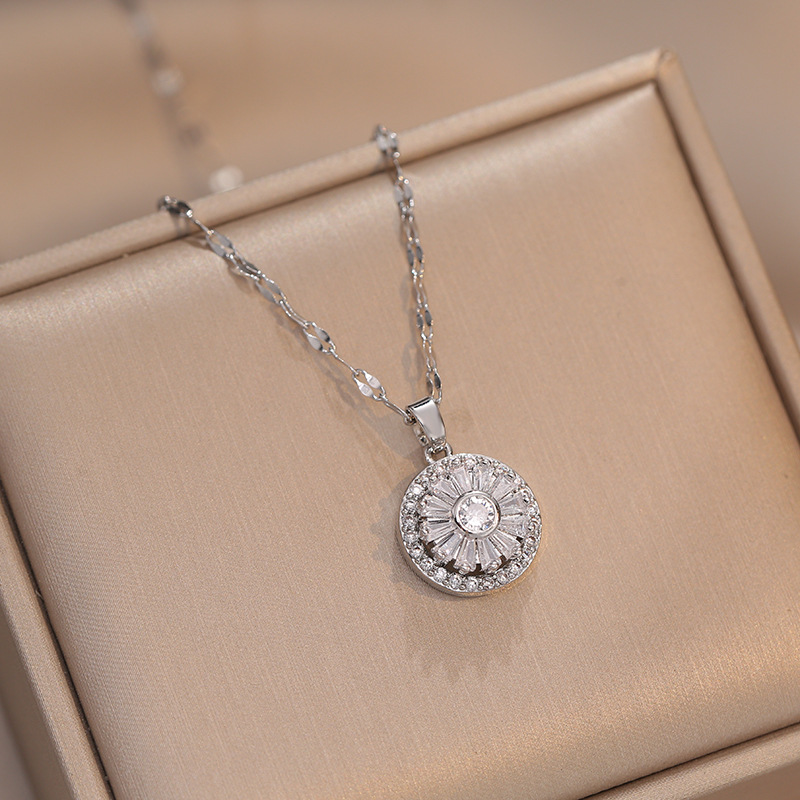 x0042 steel 22 white diamond rotating necklace {pendant together}