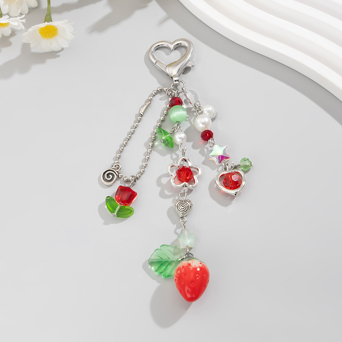 Product material: alloy + acrylic + imitation pearl + chalcedony + copper chain