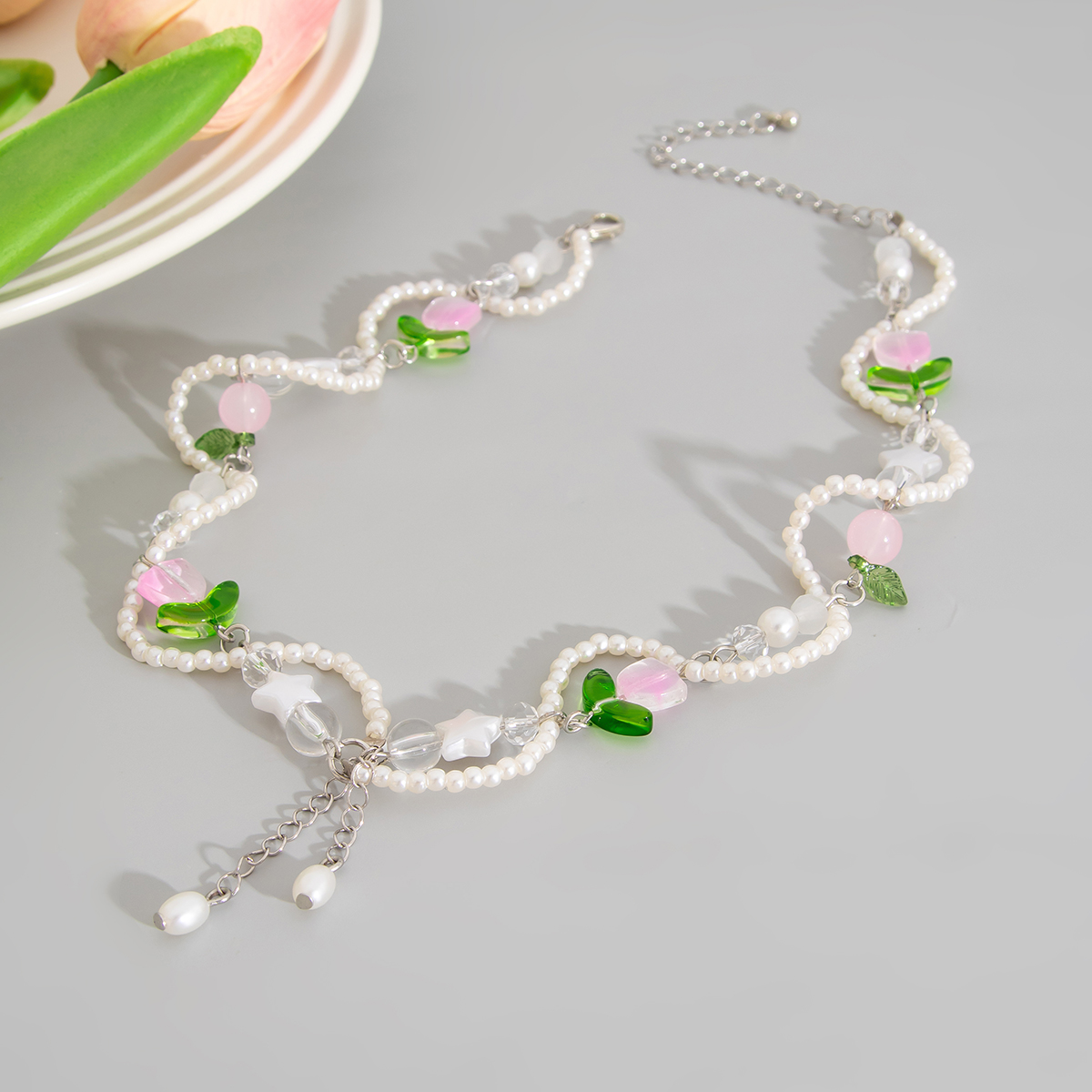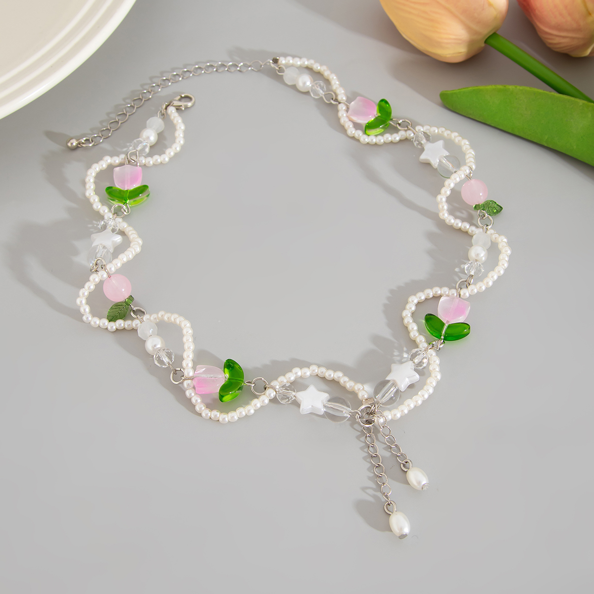 europe and america cross border ornament fresh stringed pearls necklace sweet style acrylic flower suit