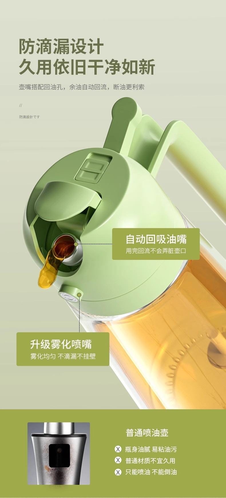 oiler spray and pour dual-purpose kitchen household oil bottle jar oil bottle air fryer glass oil tank leak-proof fuel injector integrated