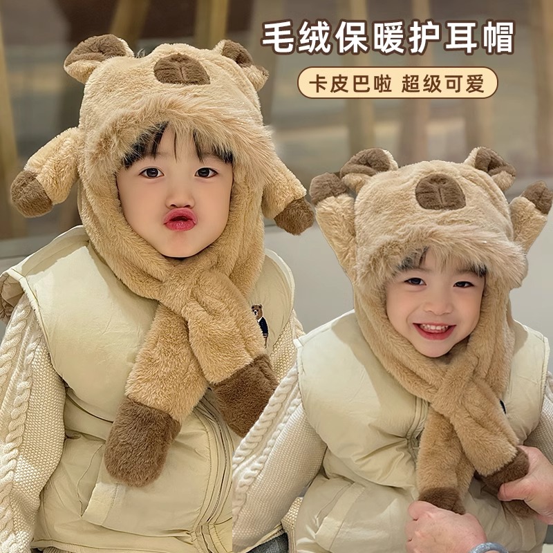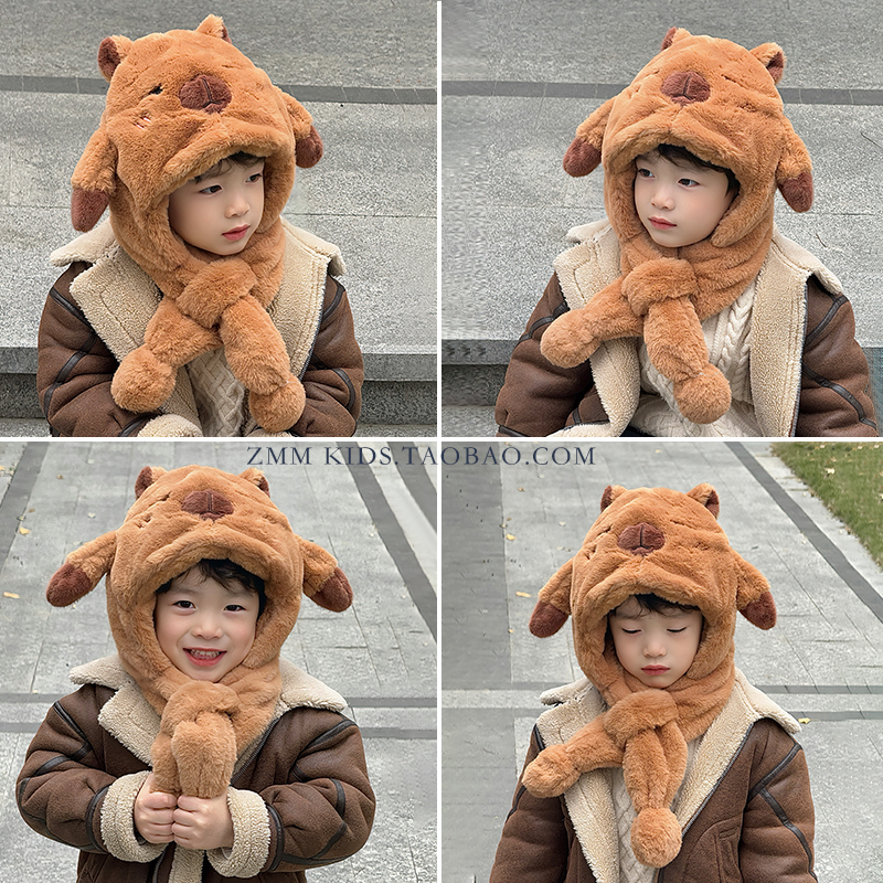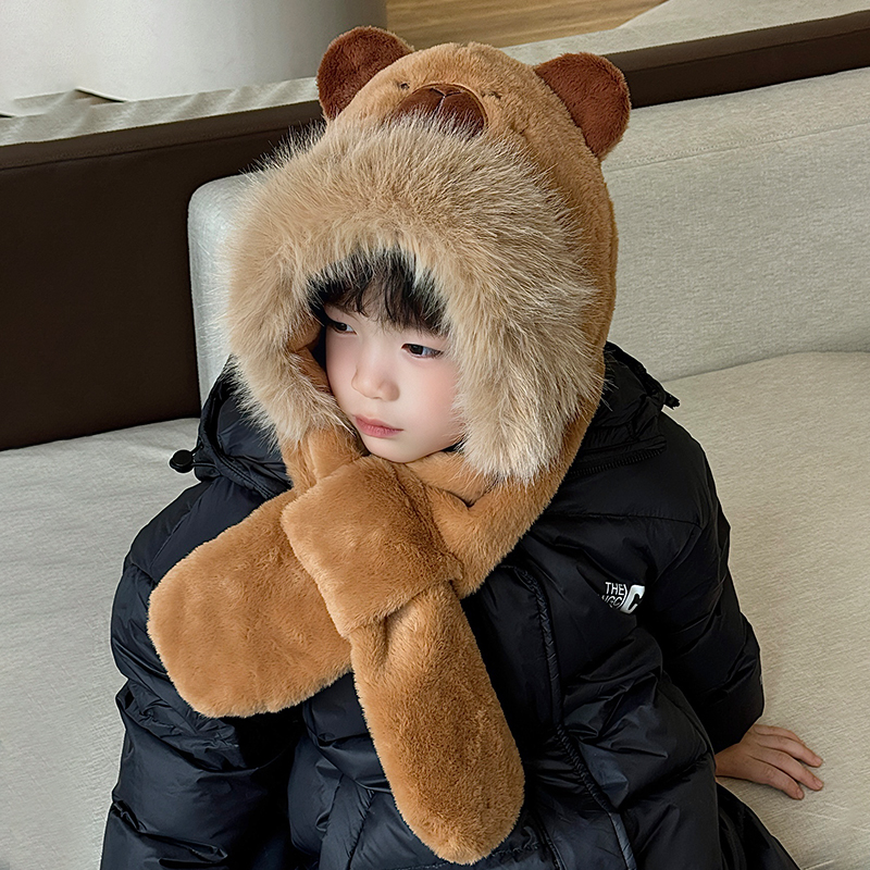 khaki-khaki bar three-dimensional scarf (two-piece set with scarf) * head circumference 54cm (recommend 5-12 years old)