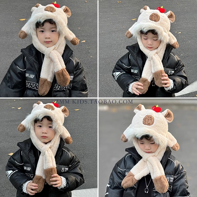 khaki-khaki bar three-dimensional scarf (two-piece set with scarf) * head circumference 54-56cm (recommend 12 years old-cheng