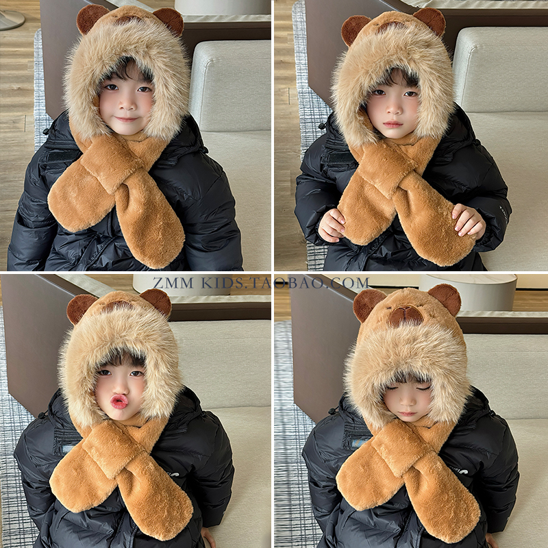 brown-khaki bar three-piece set (one pinch ear can move) * head circumference 54cm (recommend 5-12 years old) * free size