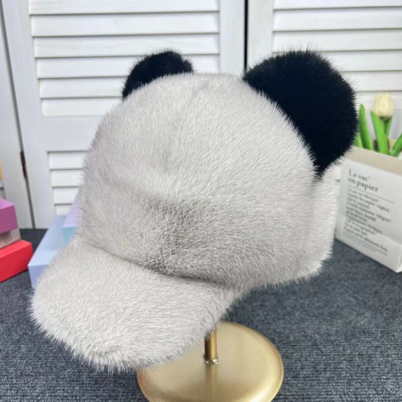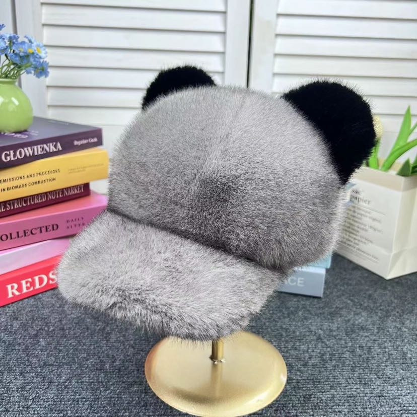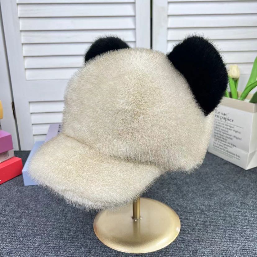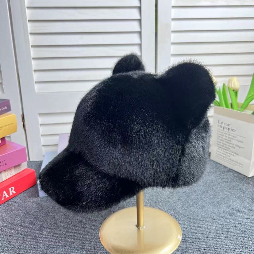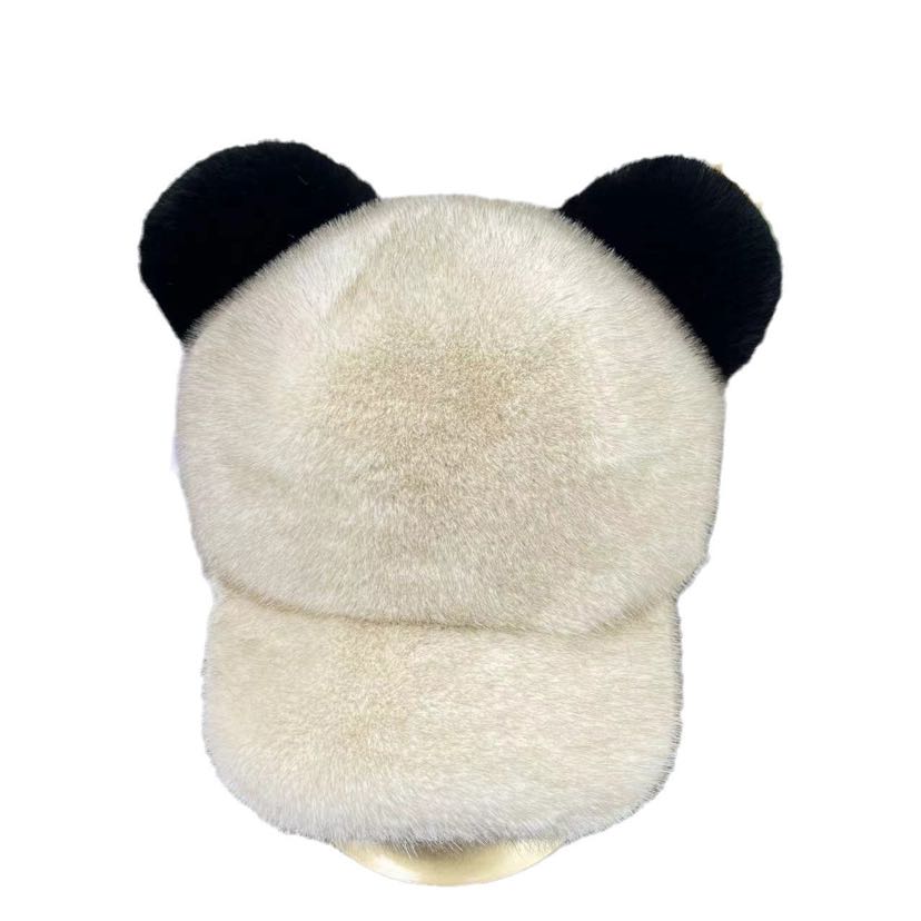 new artificial mink hair peaked cap women's winter warm fur ball cute mickey hat thickened warm women 中文版