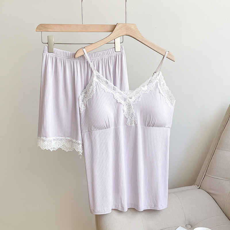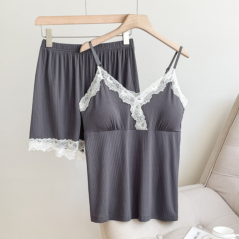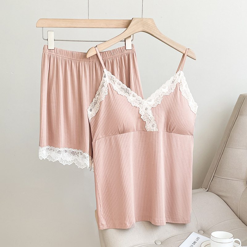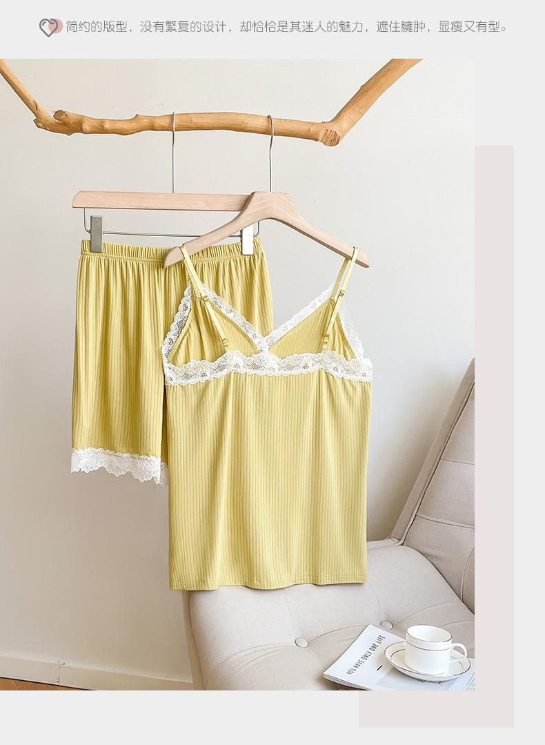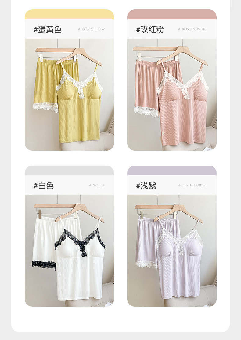 2025 new lace sideband chest pad pajamas suit women's sexy home v-neck shorts suit can be worn outside 中文版