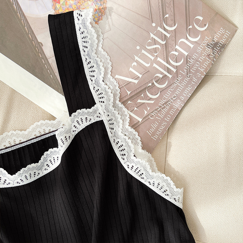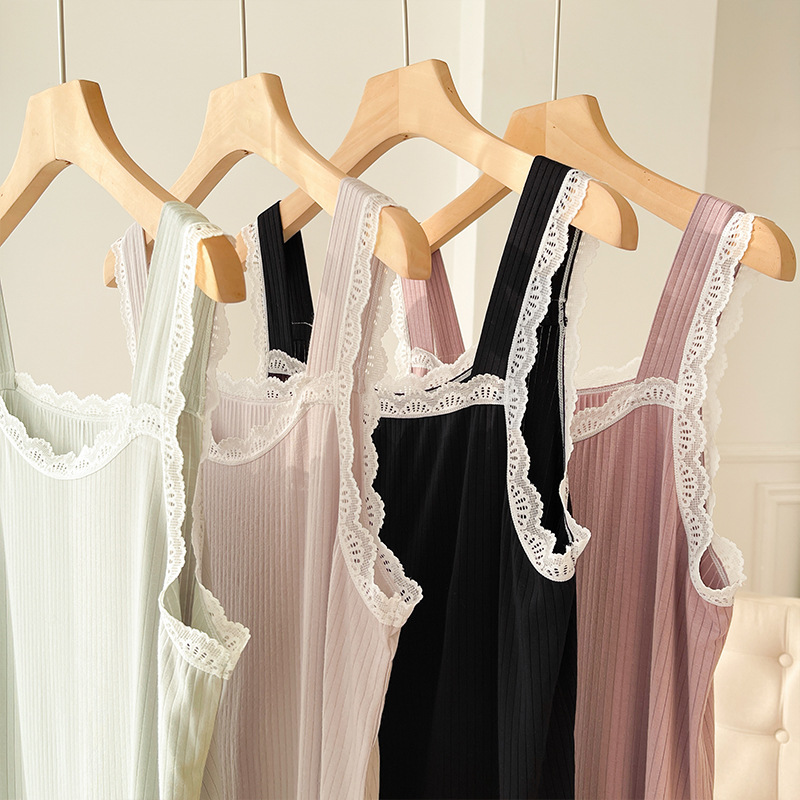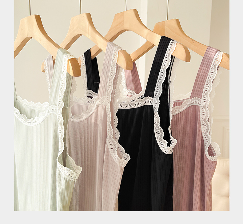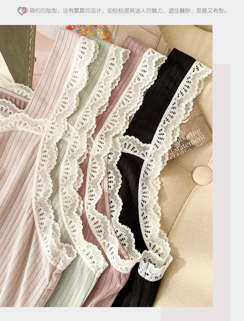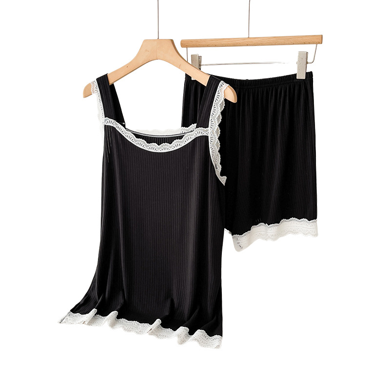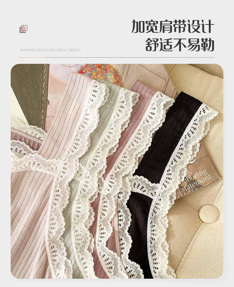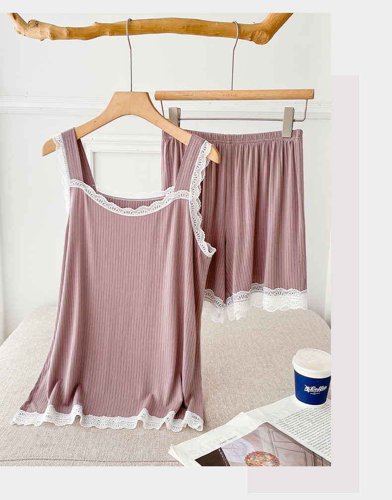 lace covered round neck wide shoulder strap vest shorts pajamas women loose cool home wear suit women can wear outside 中文版