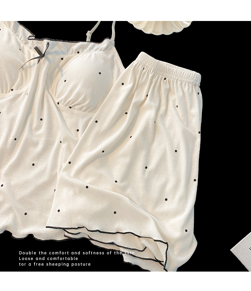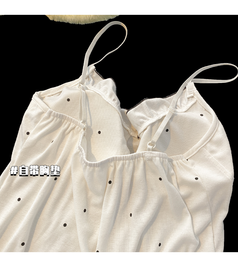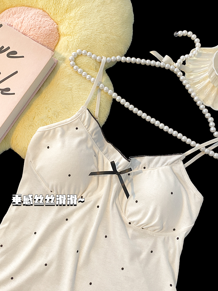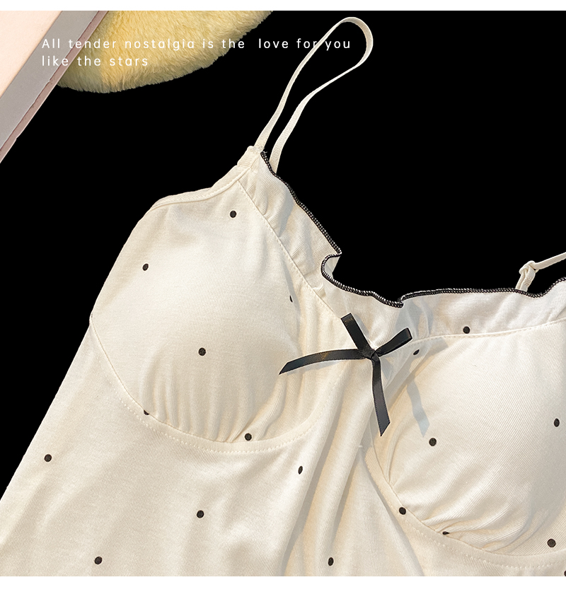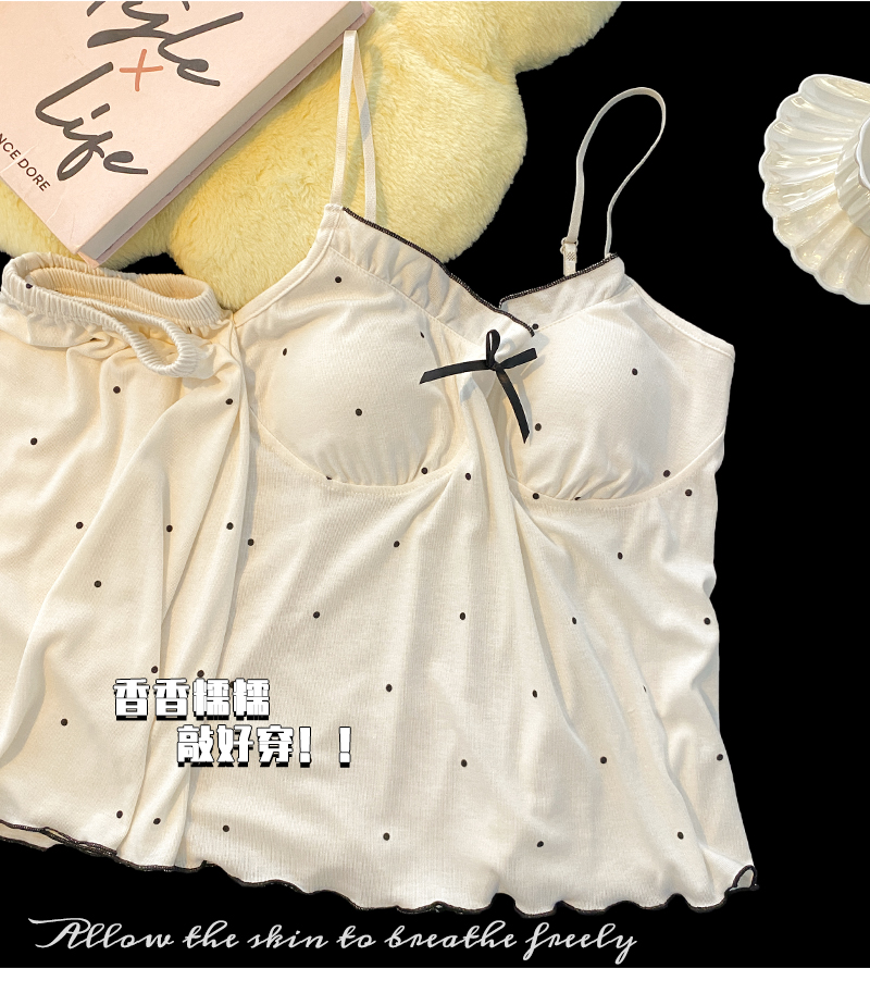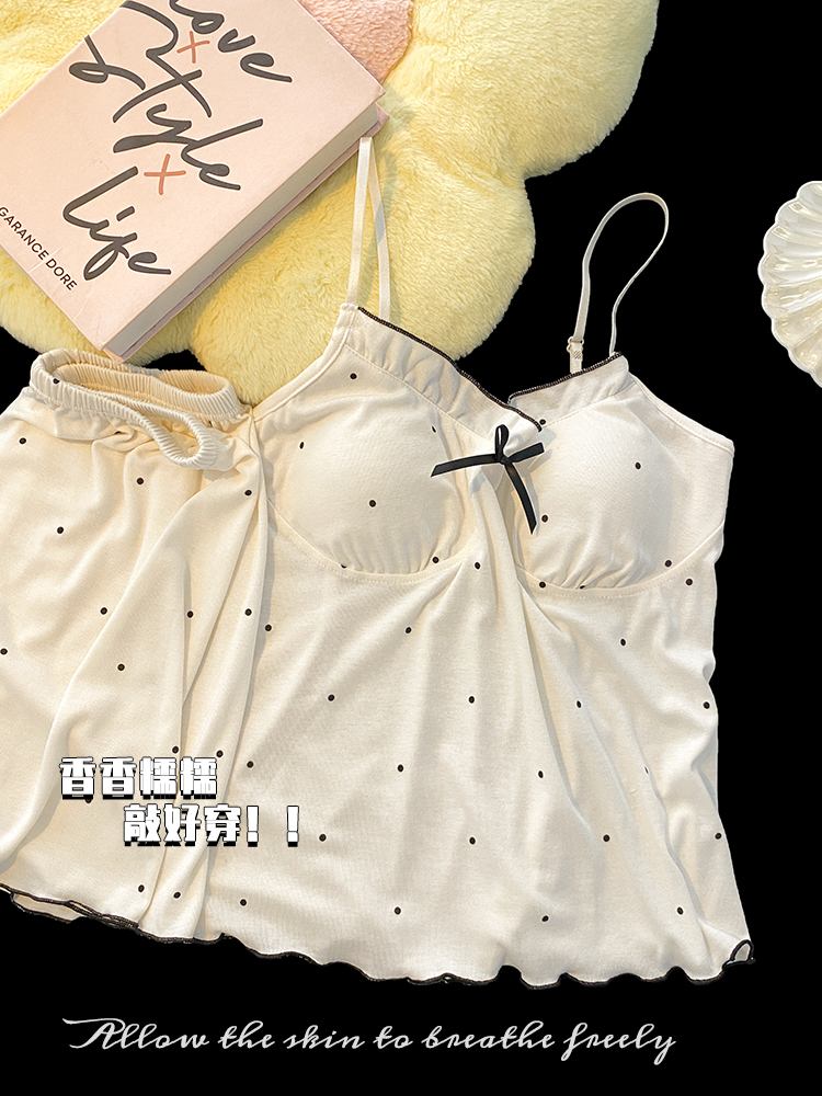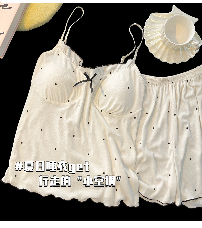 2024 new sexy spaghetti-strap padded summer modal cotton pajamas women's thin sweet polka dot homewear suit 中文版