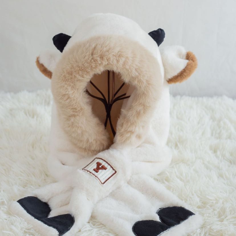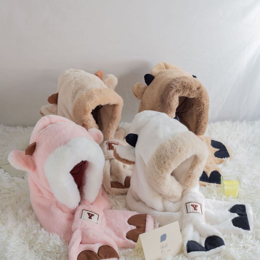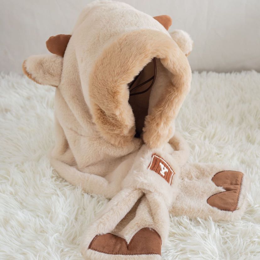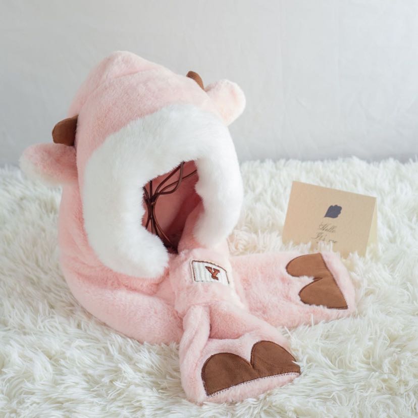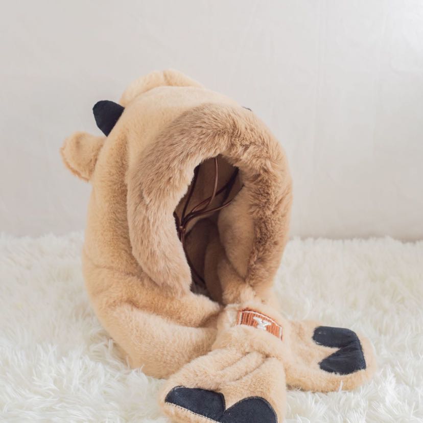 cute bear plush bonnet scarf one female winter earflaps hooded warm scarf lei feng thickened windproof cycling 中文版