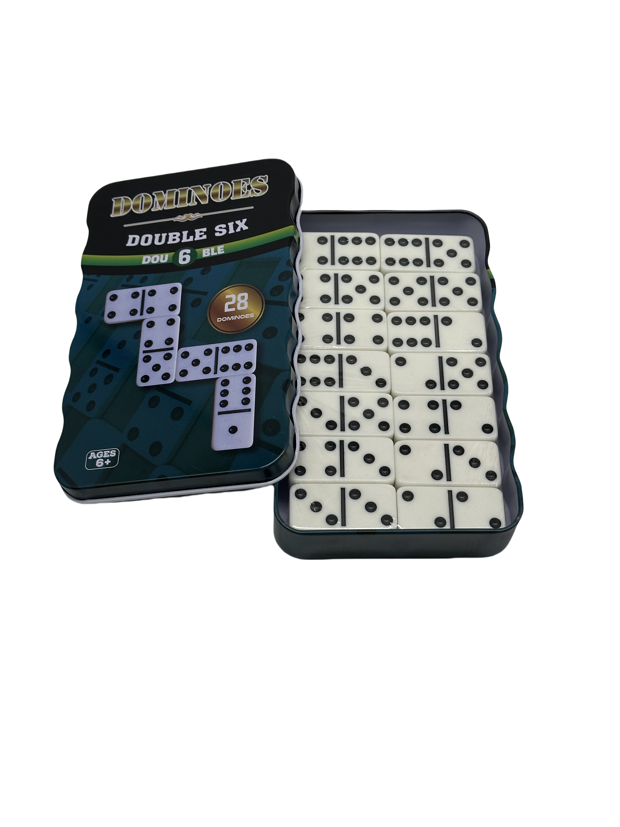dominoes4010 green iron box melamine domino set 28 sheets double 6 black dots dominoes
