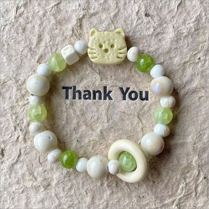 blue beads yellow biscuit cat