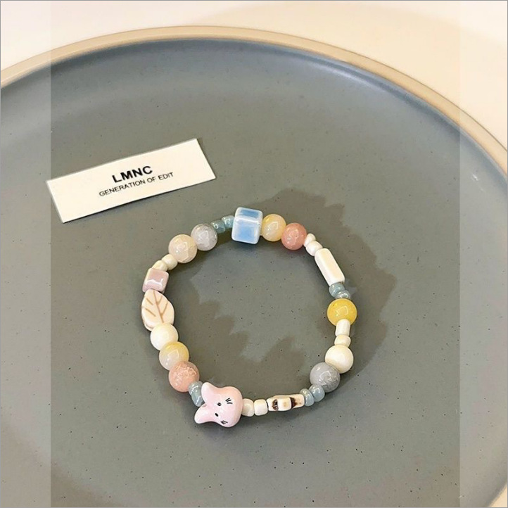 blue beads yellow biscuit cat