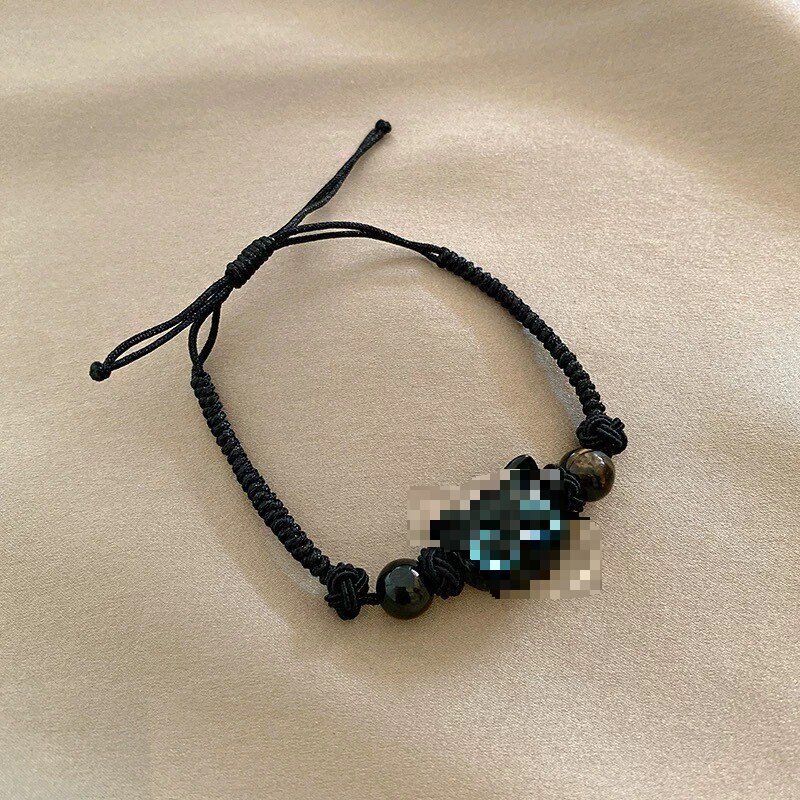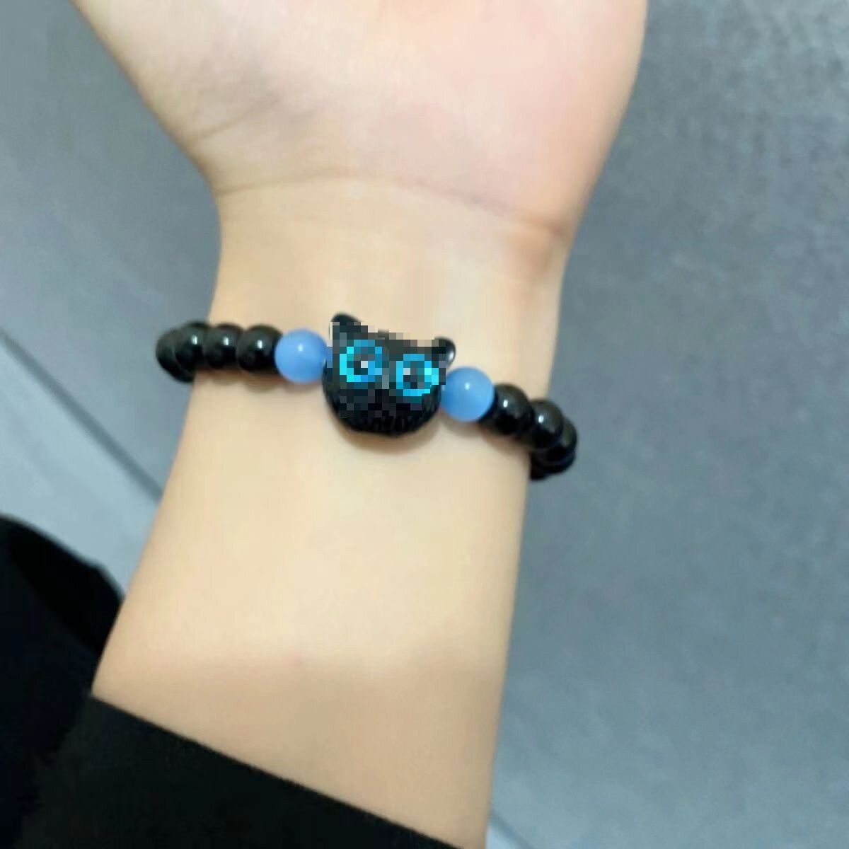 black beads and blue pupil