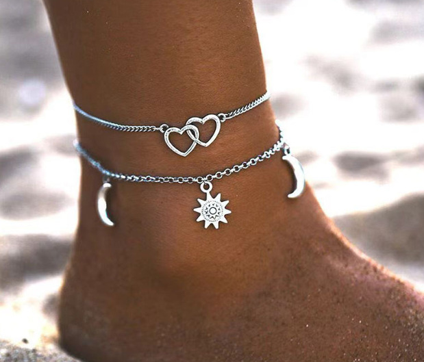 silver pairs of love anklets long card packaging