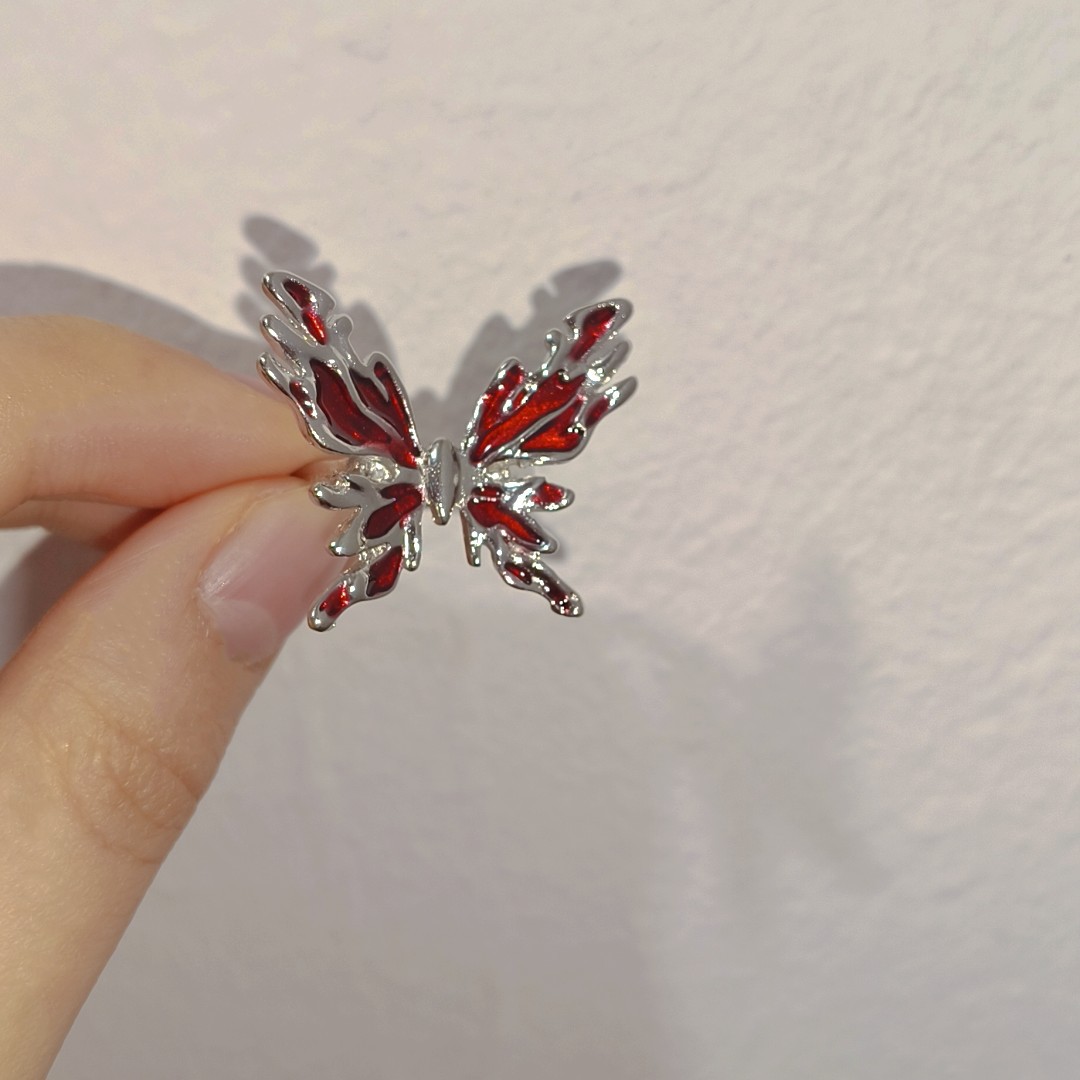 oil dripping red butterfly ring