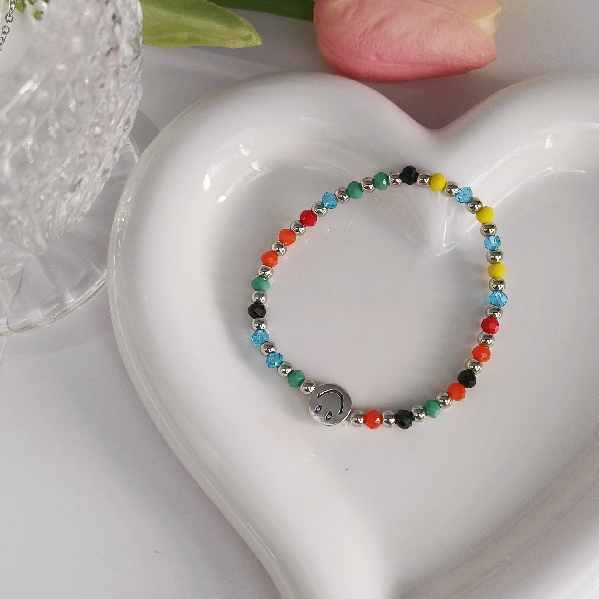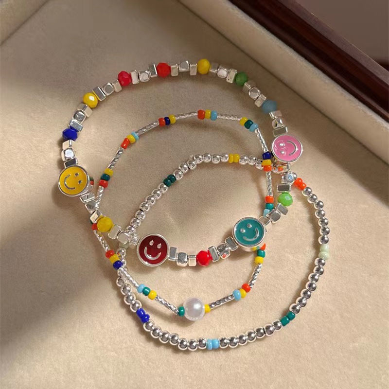 colorful beaded silver smiley bracelet