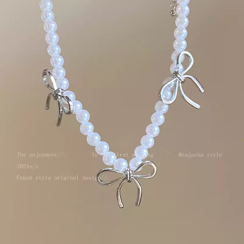 bow pearl necklace